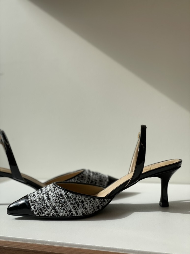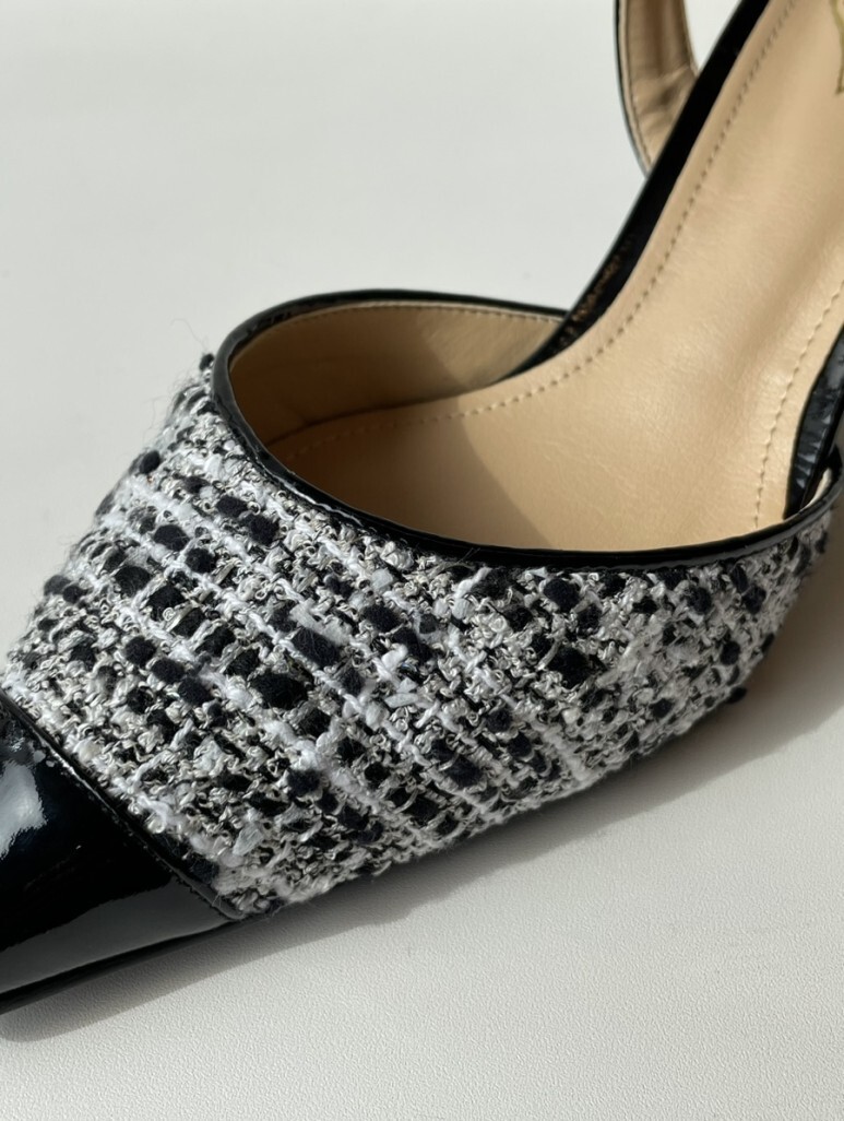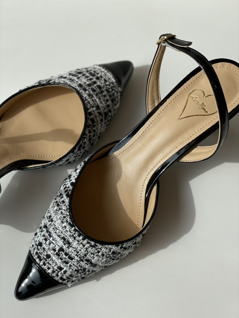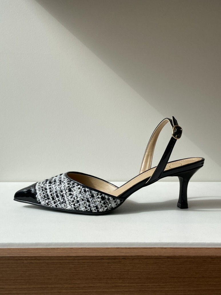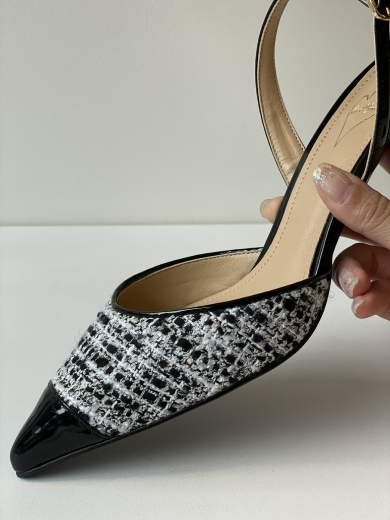 포인티드 토 쉐입은 앞코 전체를 트위드로만 사용했을 때