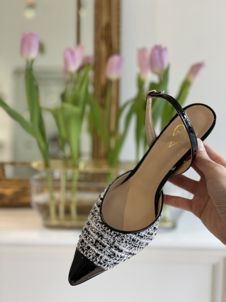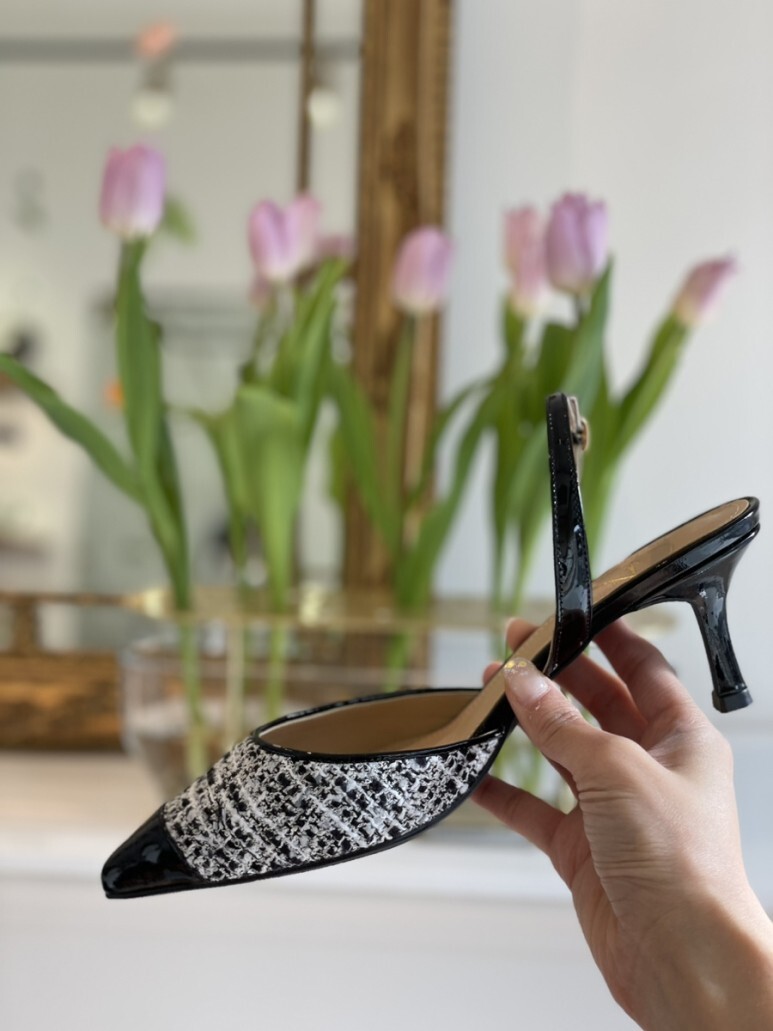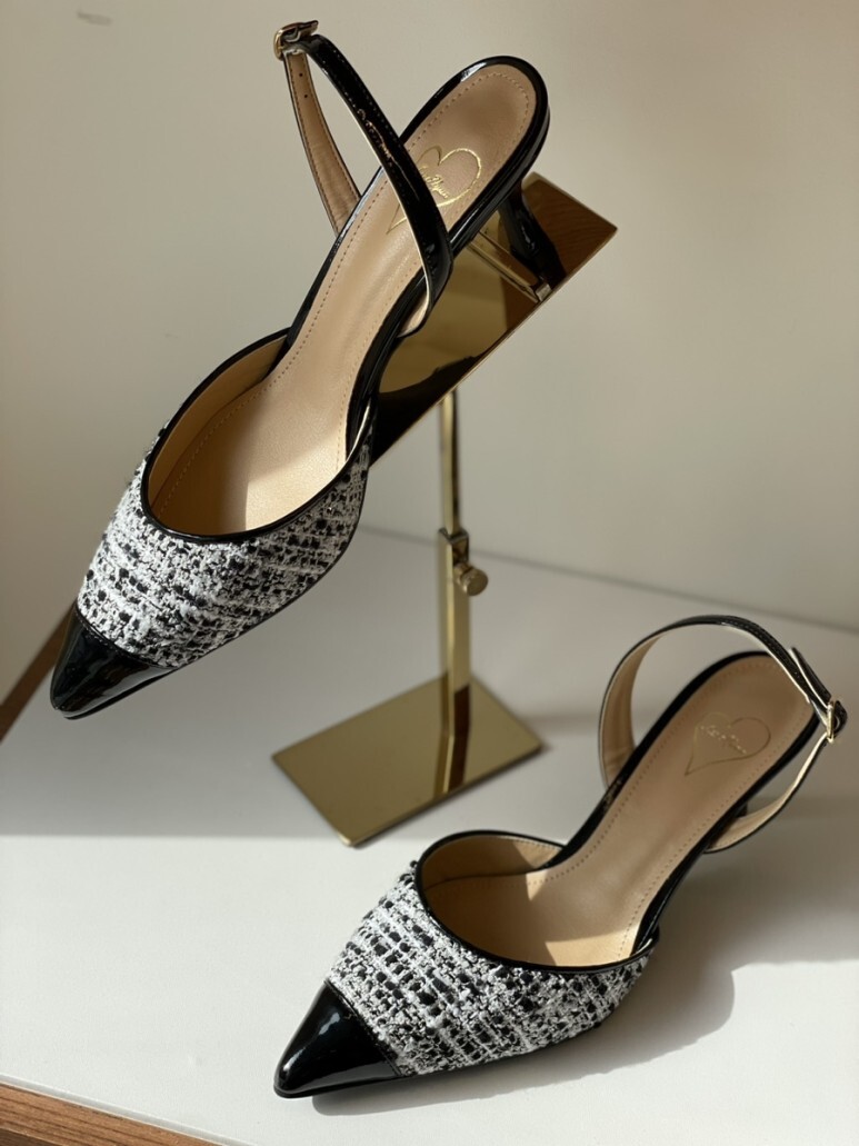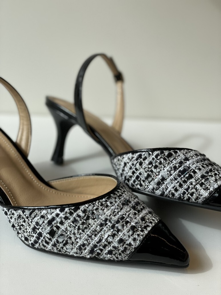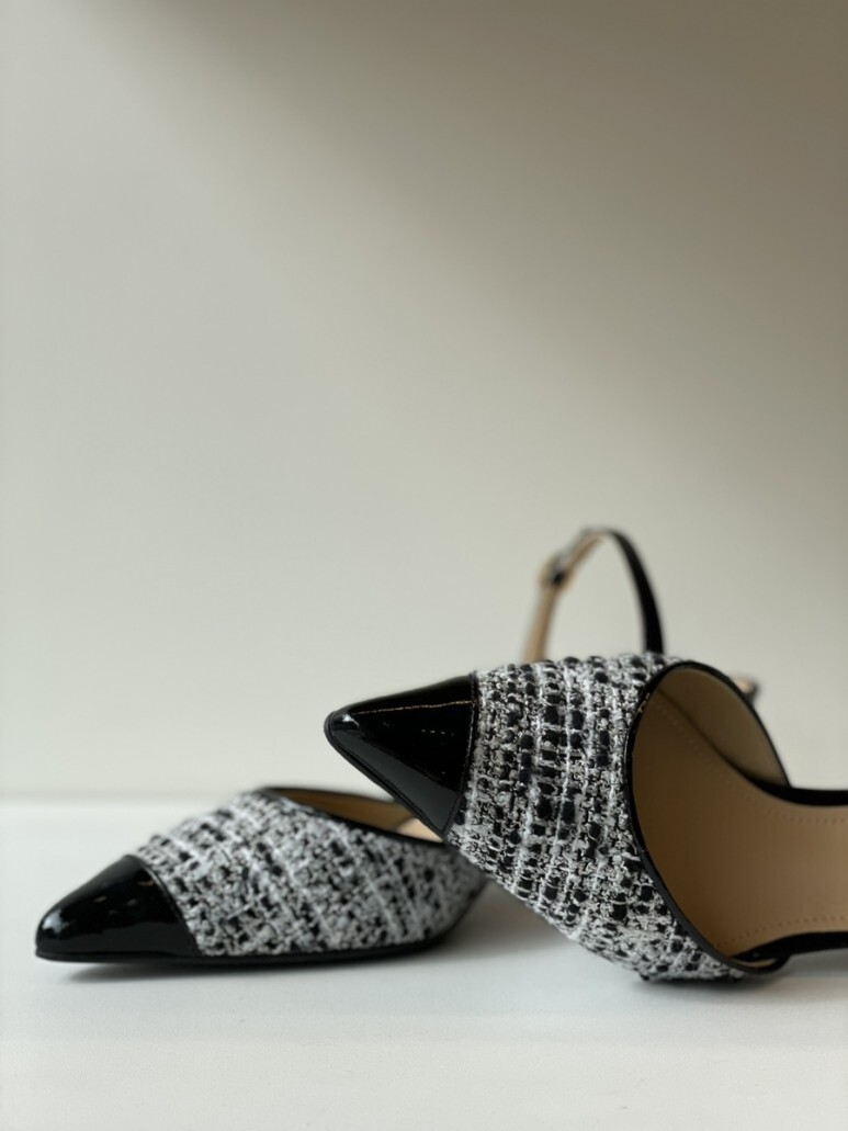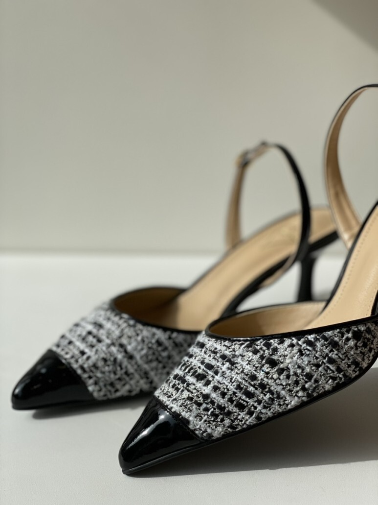 포인티드 토 쉐입은 앞코 전체를 트위드로만 사용했을 때