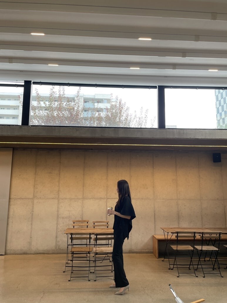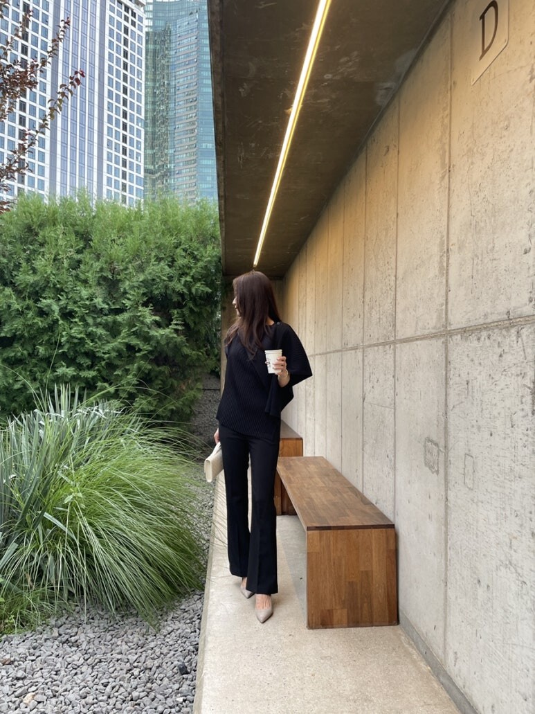 특히 모노톤 니트와 트렌치 코트, 크리미한 팬츠룩에