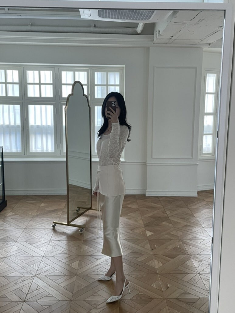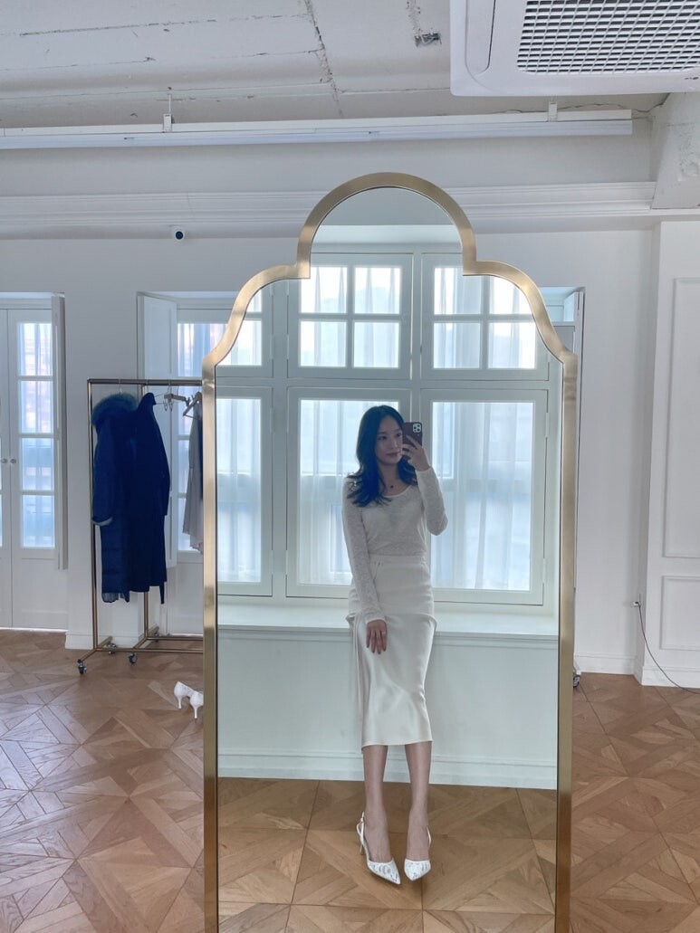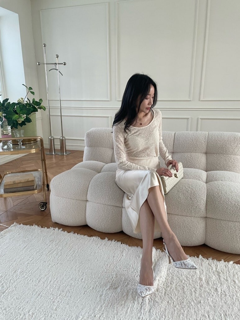 슬링백버전은 화이트 스커트에 매치해서 착화컷을 찍었는데