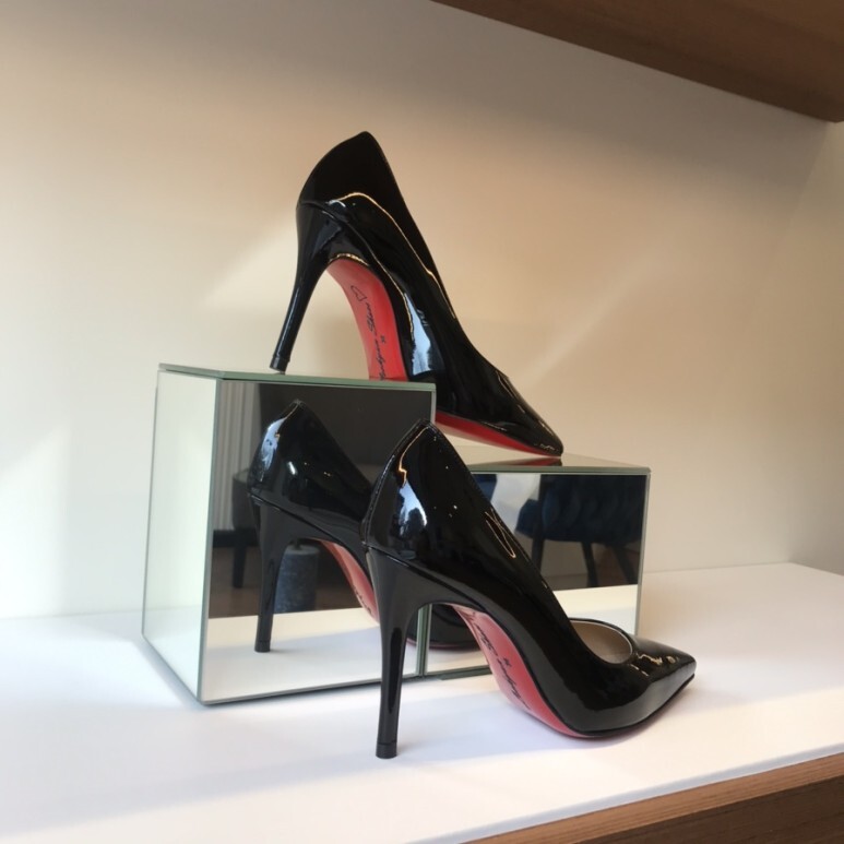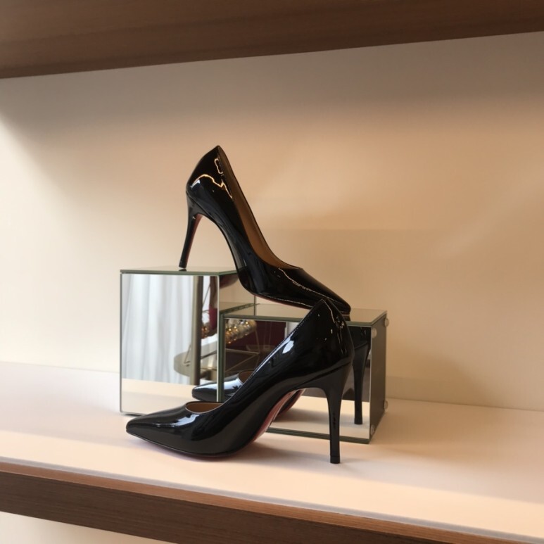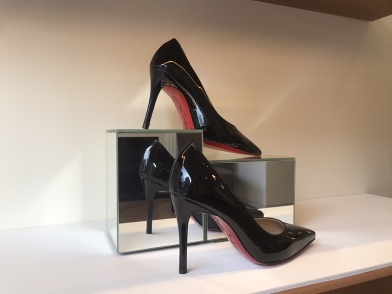 블랙 유광의 페이던트소재와 레드 아웃솔로