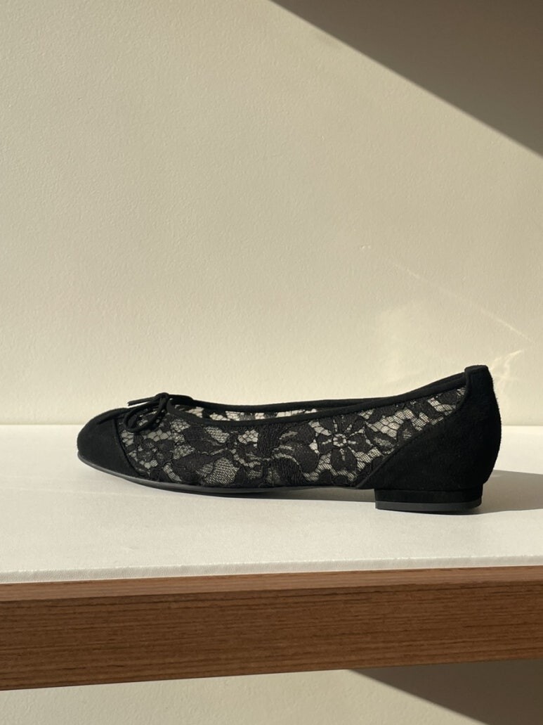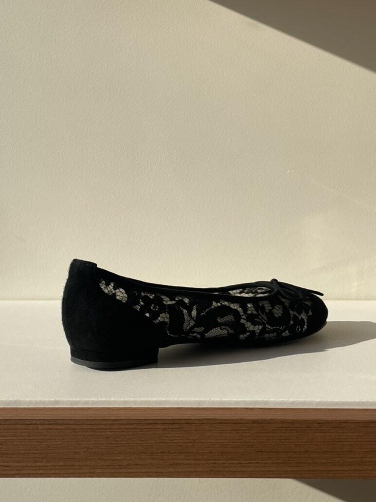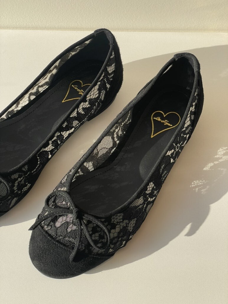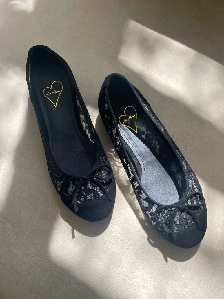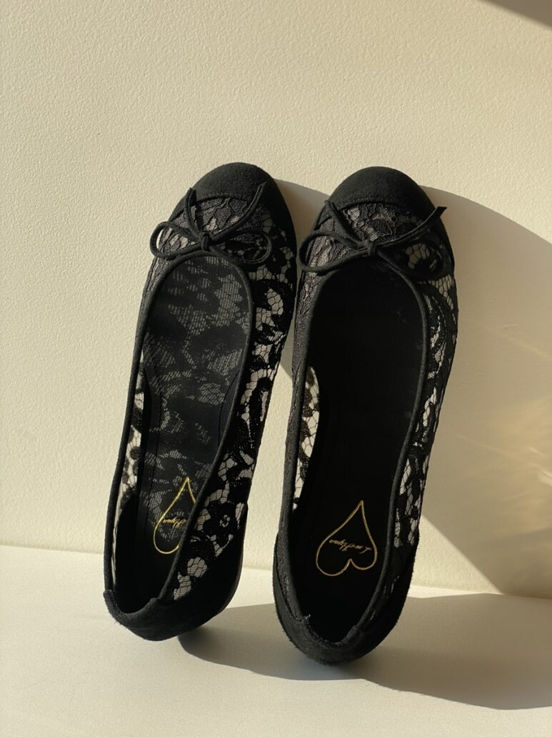 말랑한 라운드 앞코에 섬세한 블랙 레이스를 덮어준 순간