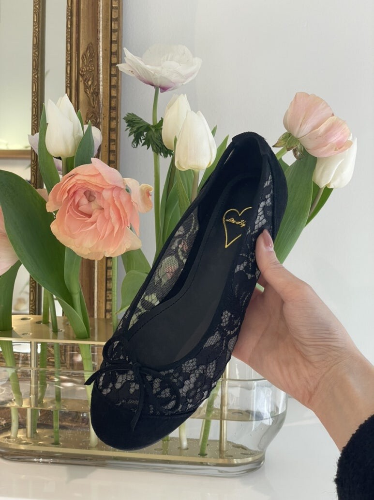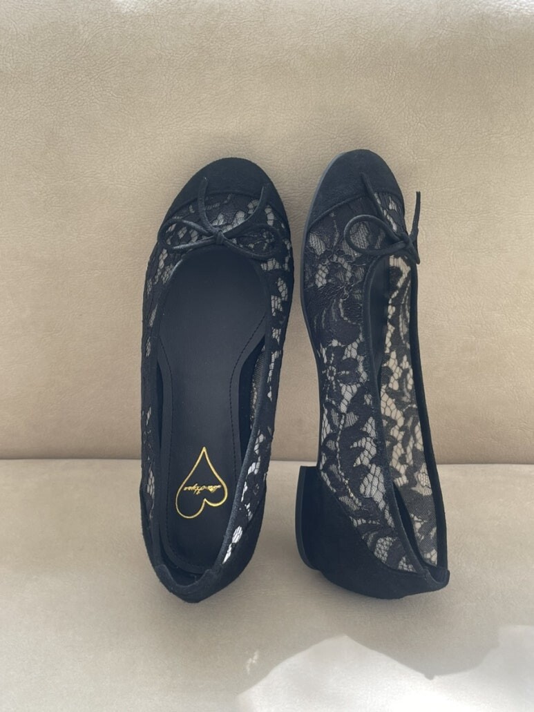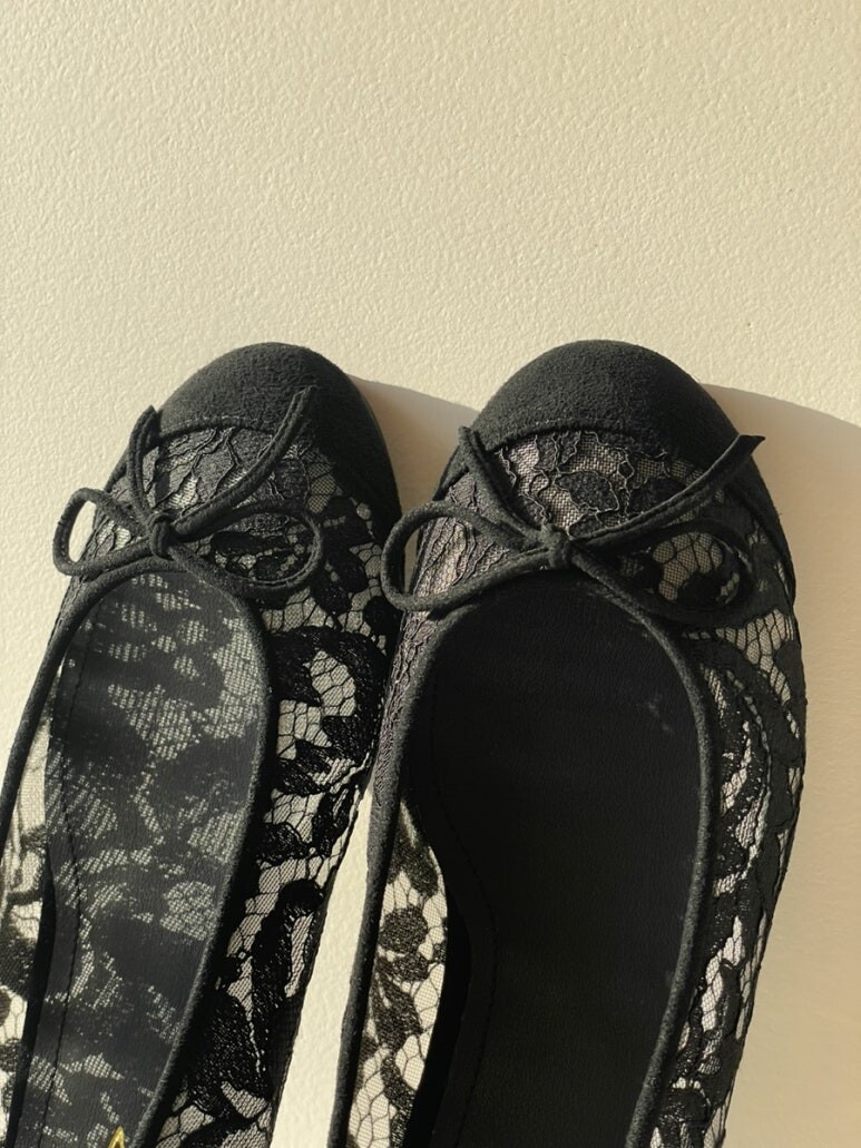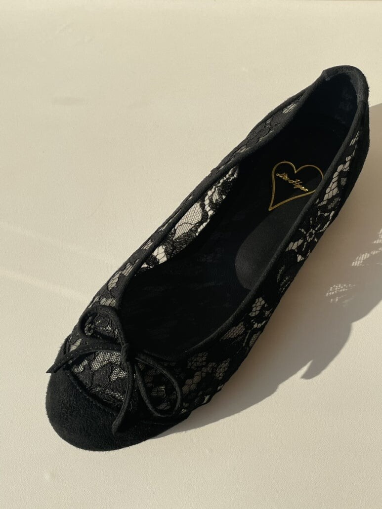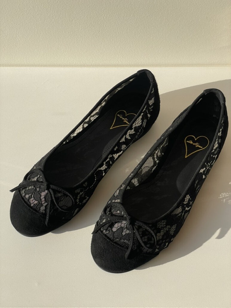 말랑한 라운드 앞코에 섬세한 블랙 레이스를 덮어준 순간