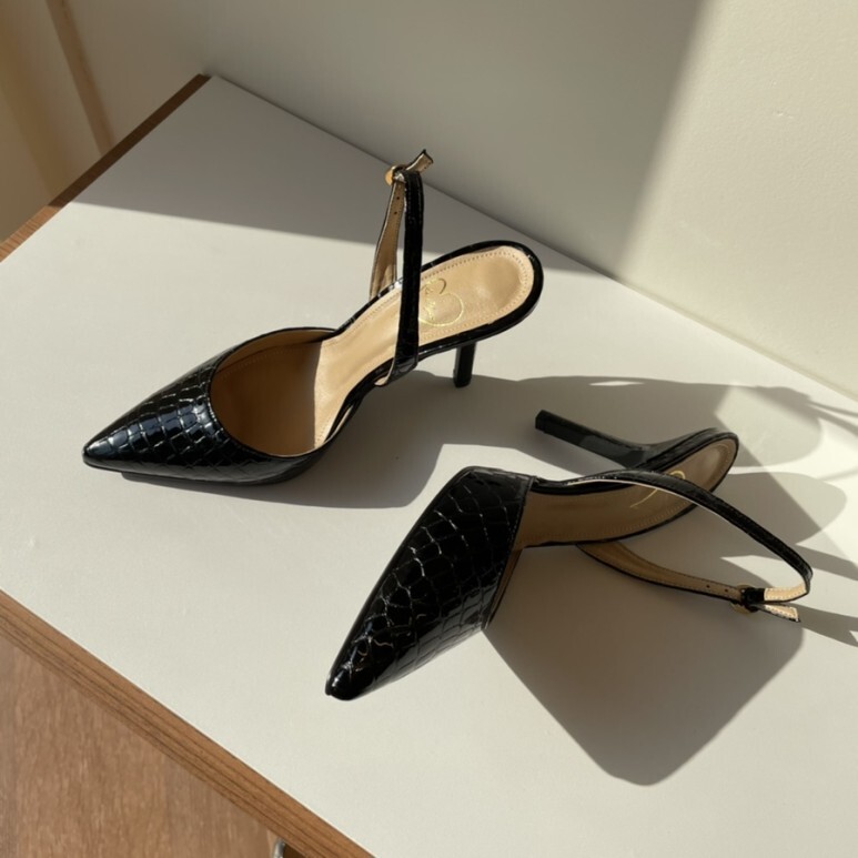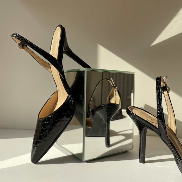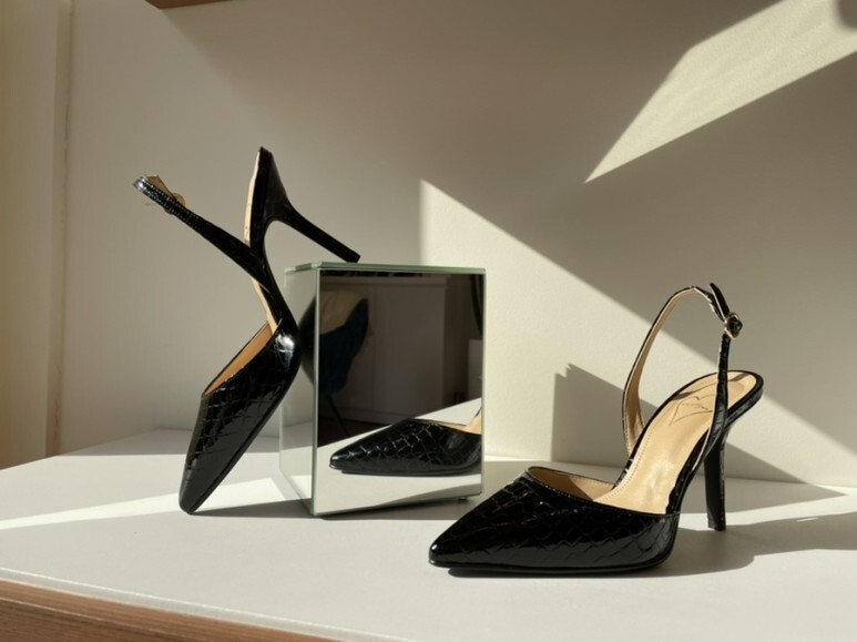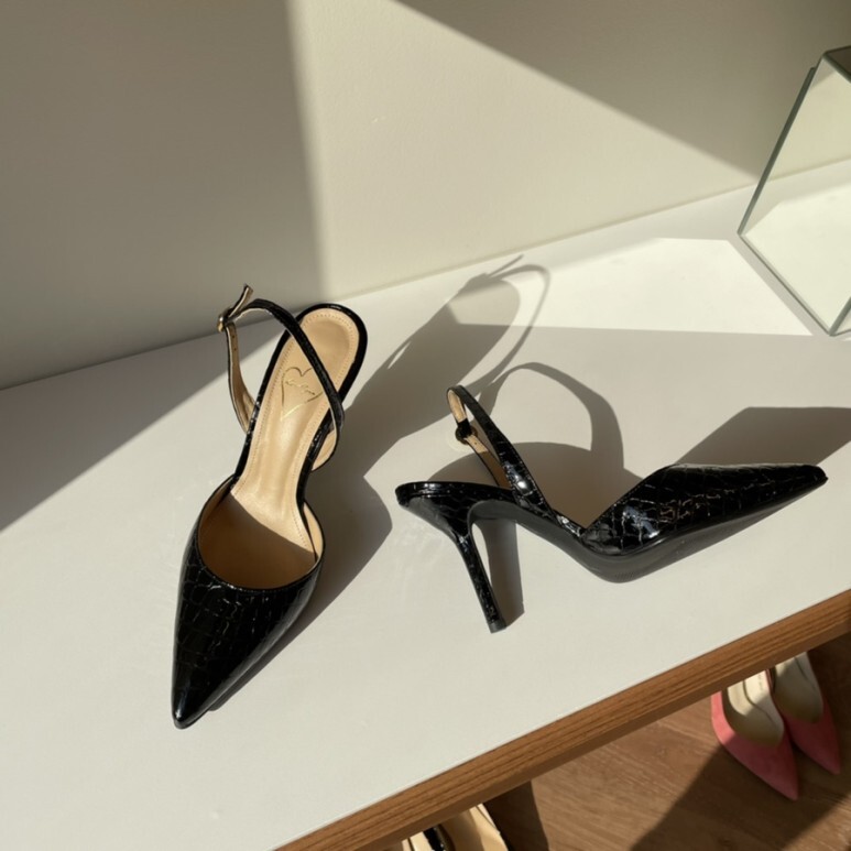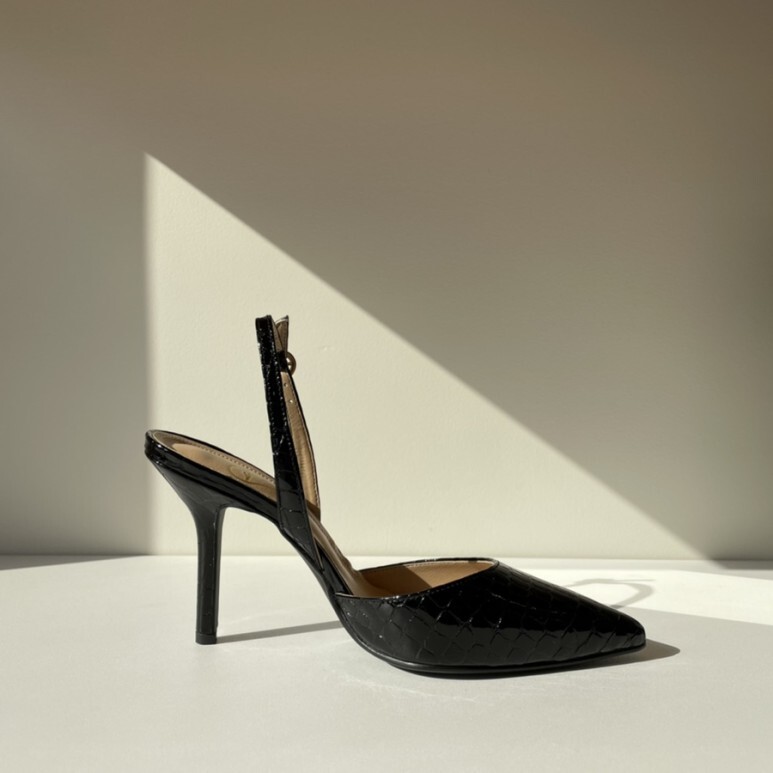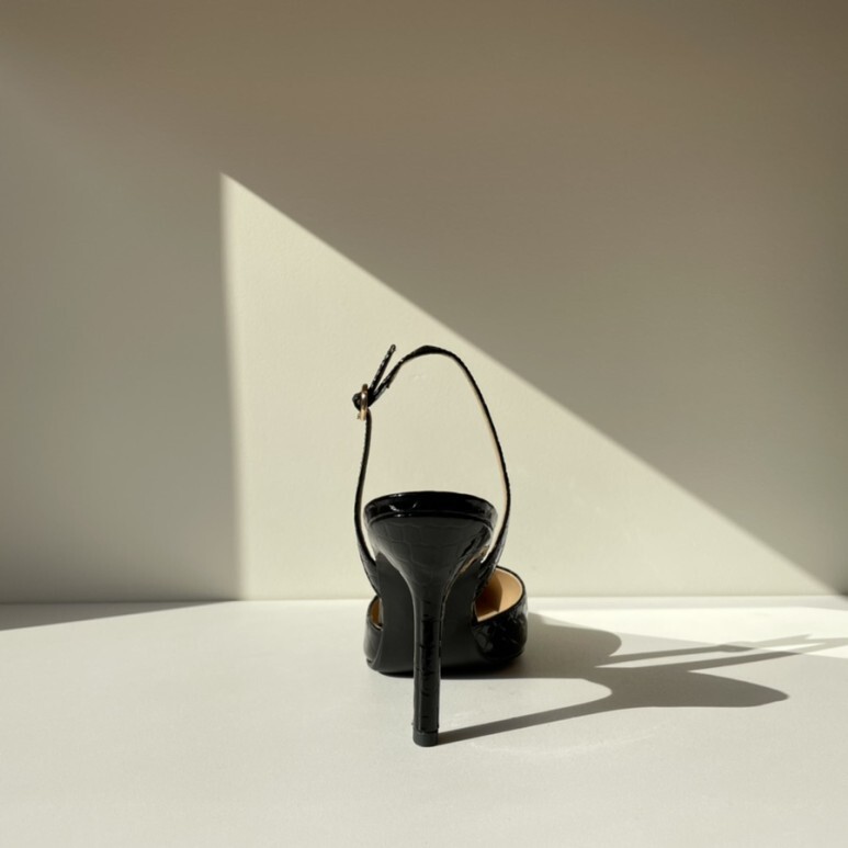 black croc-effect slingbacks - (1,6,8,9cm)
