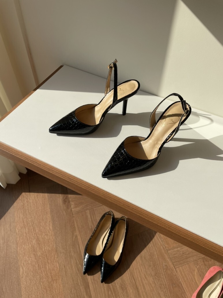 기본 블랙컬러의 슬링백이라 어디에나 잘 어울릴테지만