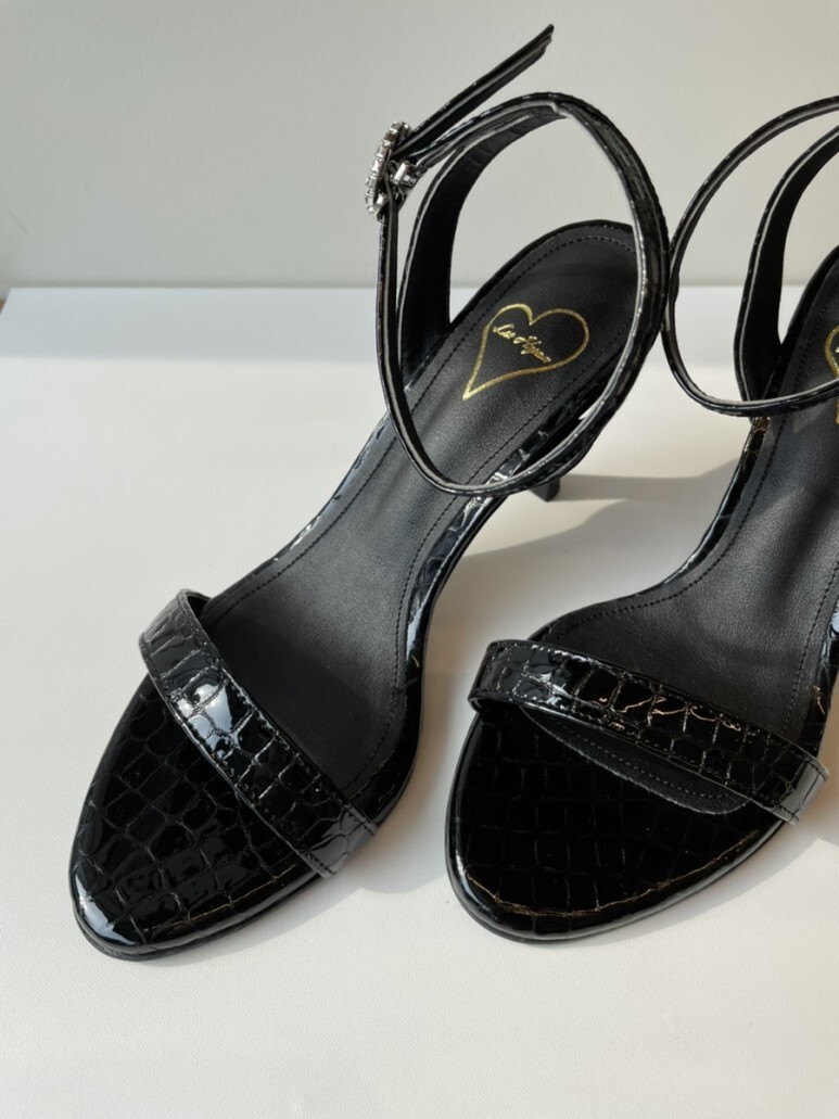 블랙 페이던트의 광택과 이태리 가죽의 크록패턴까지