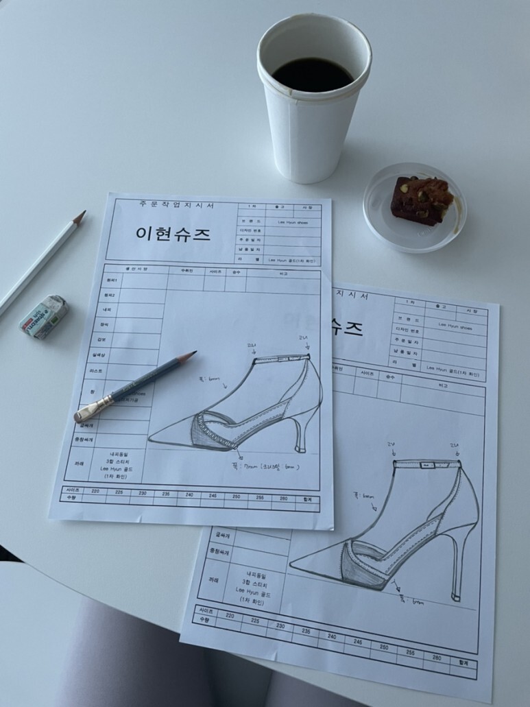 제가 가장 특별한 순간에 신고 싶은 스타일을 스케치하고 있어요
