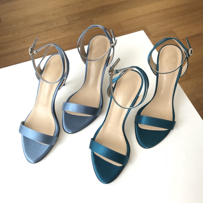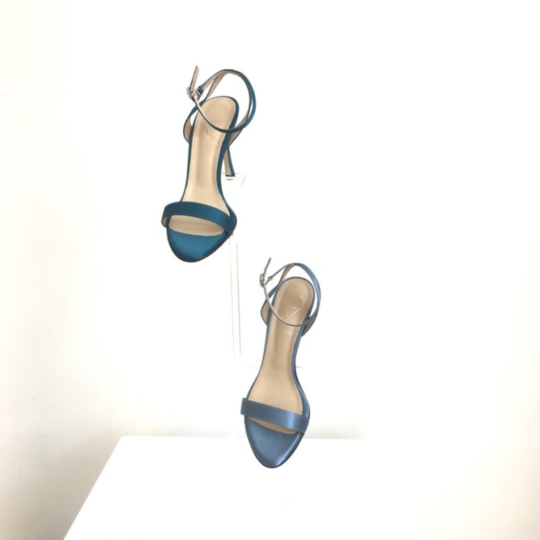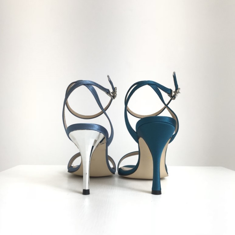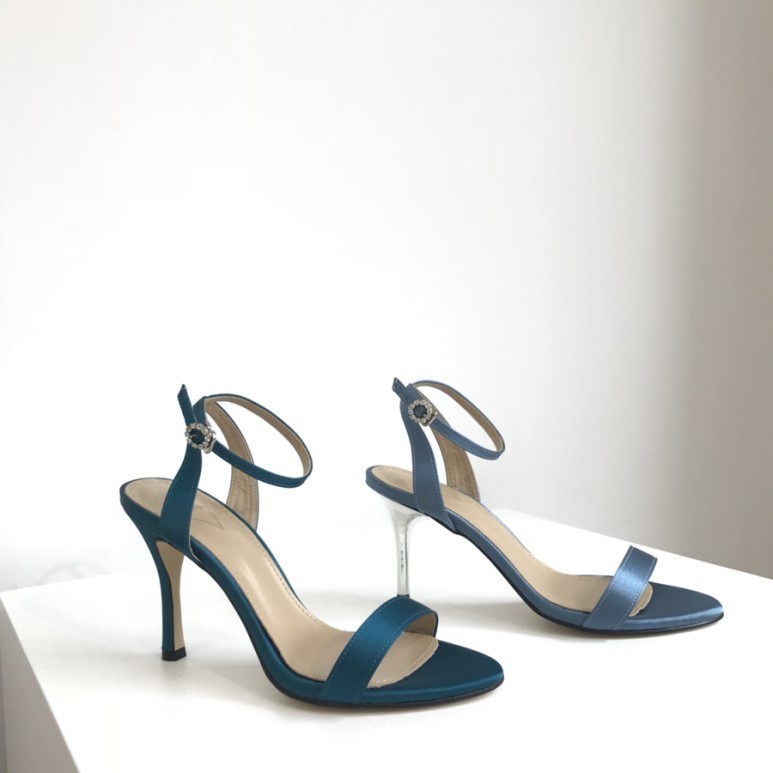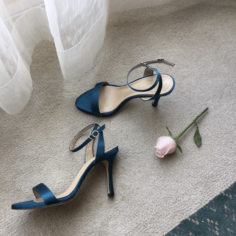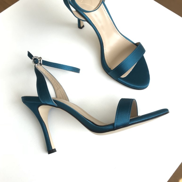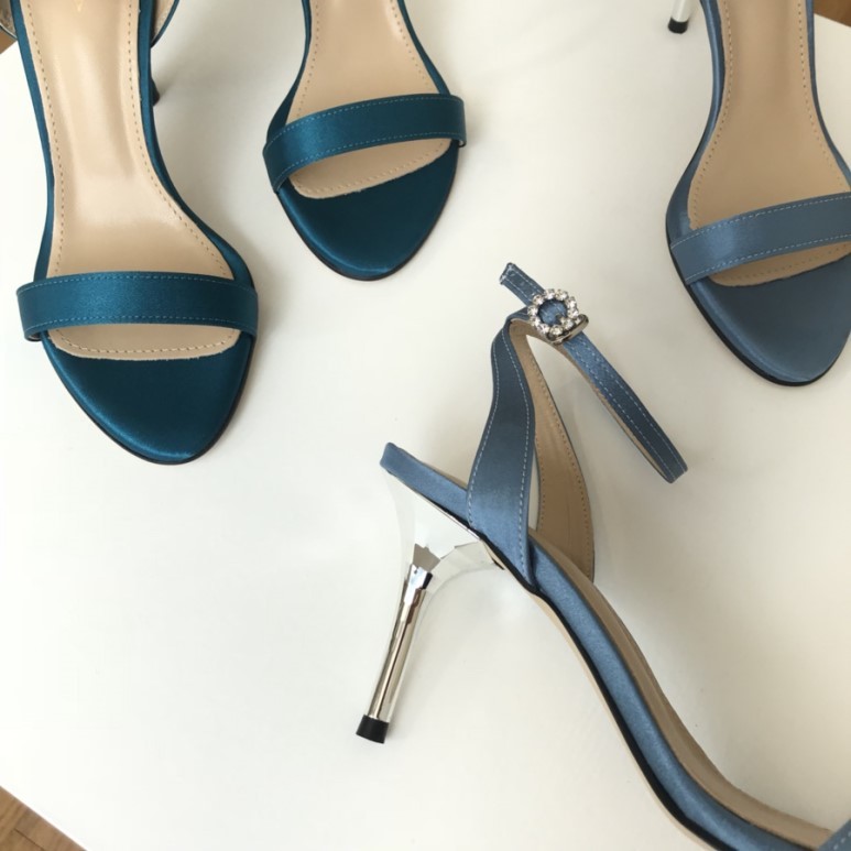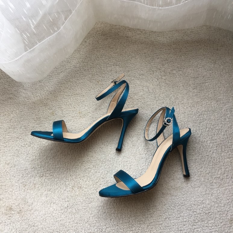 블루사파이어 컬러의 사틴 샌들이에요