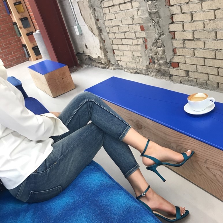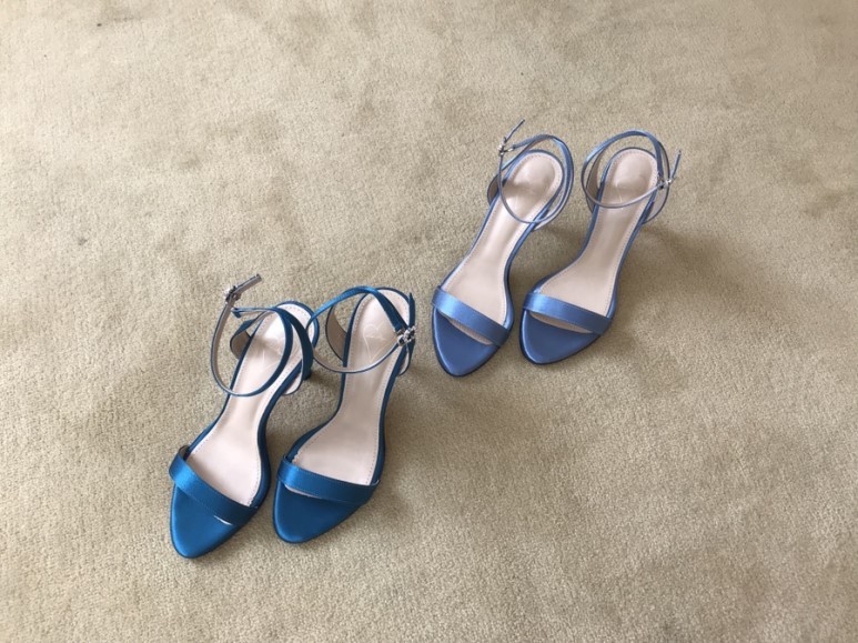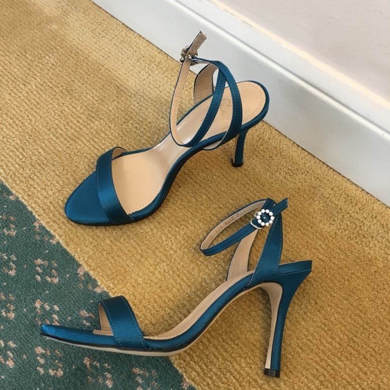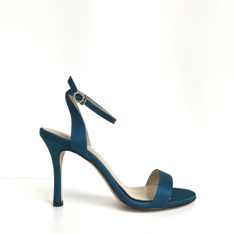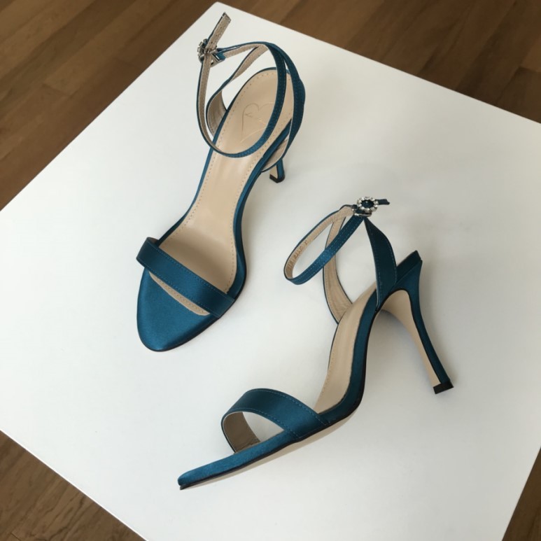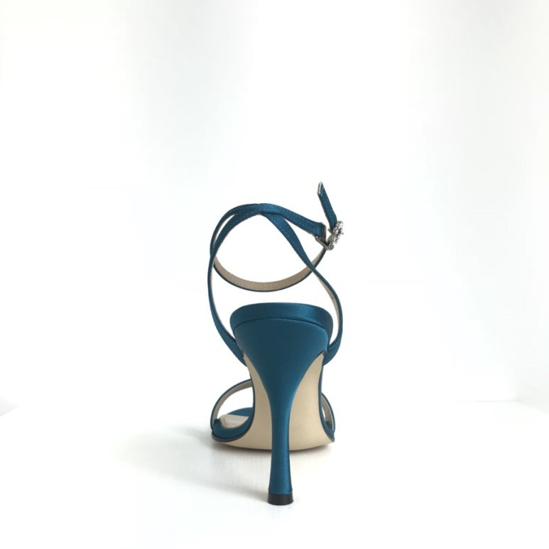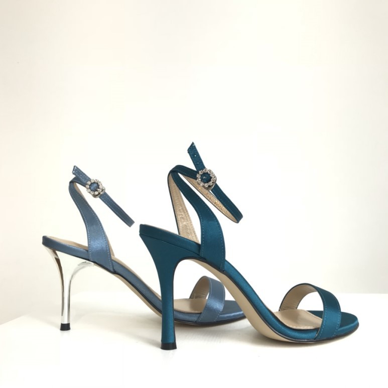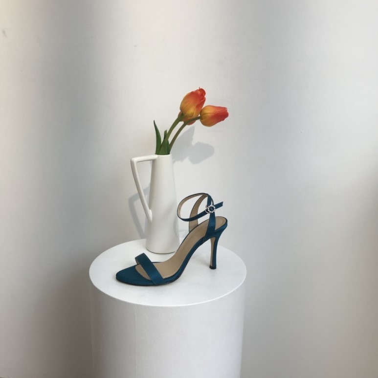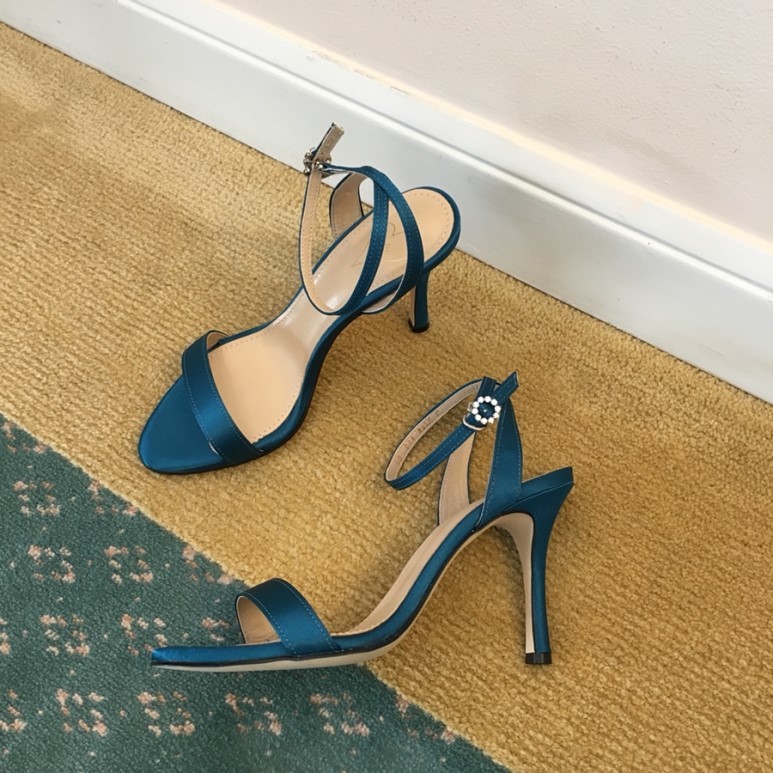 블루사파이어 컬러의 사틴 샌들이에요