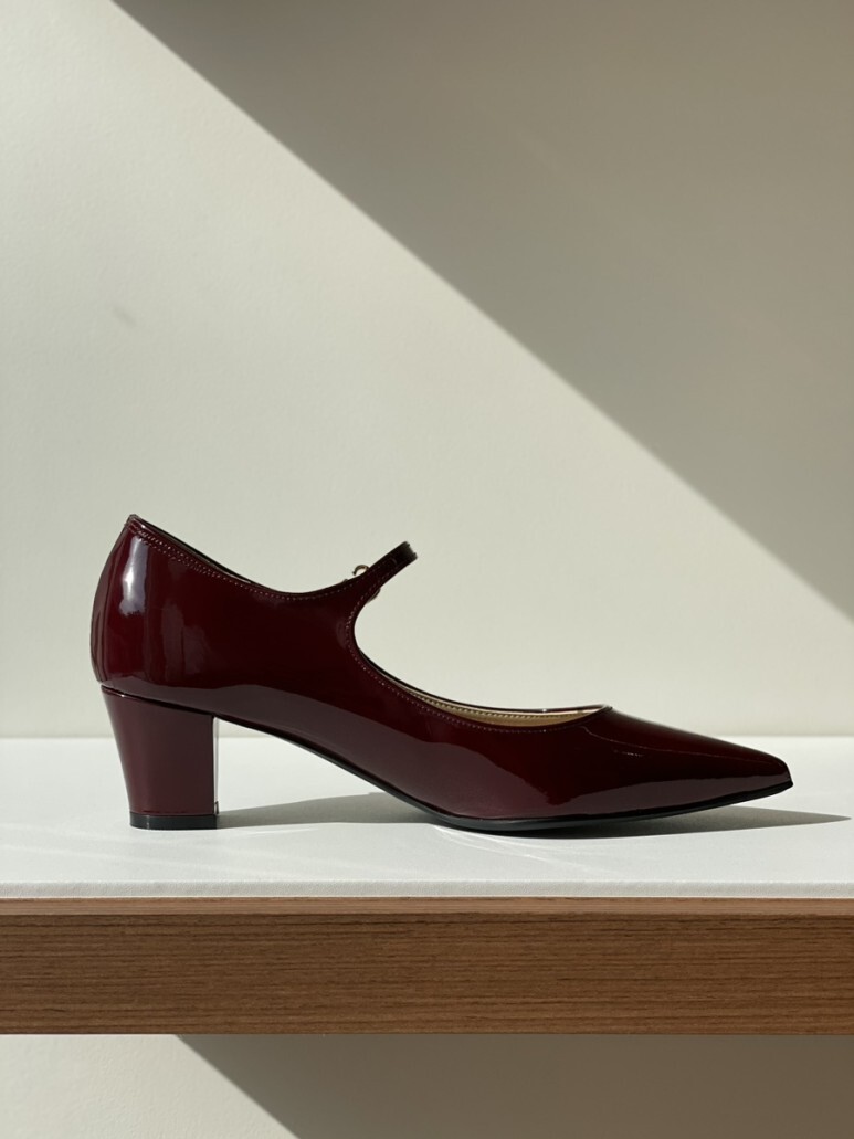 Burgundy Maryjane - Pointed Toe (1,3,5,6,8,9cm)