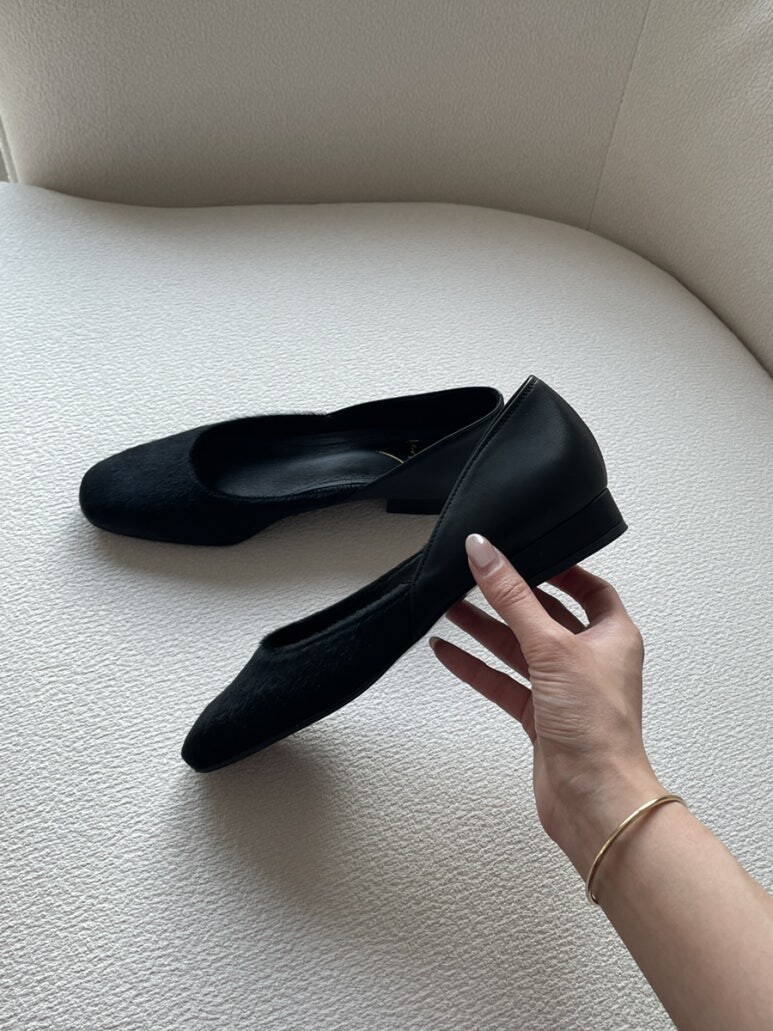 겉과 안, 모든 디테일을 블랙으로 통일한 플랫슈즈에요🖤