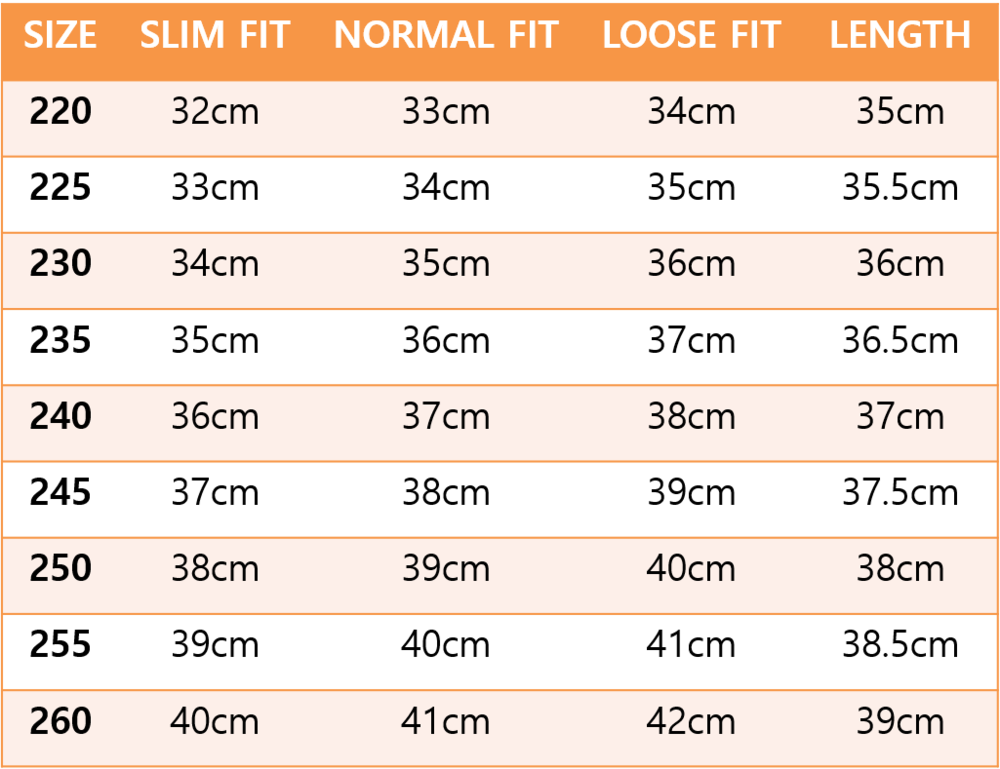 사이즈에 따라 부츠 기장이 다르기 때문에