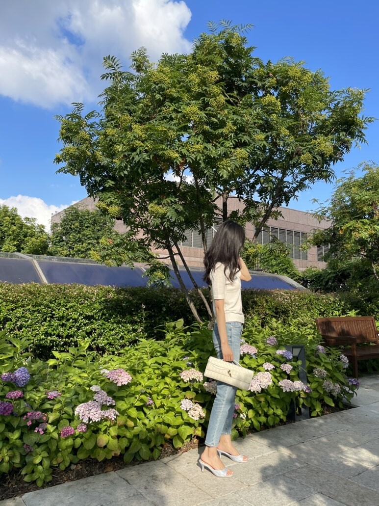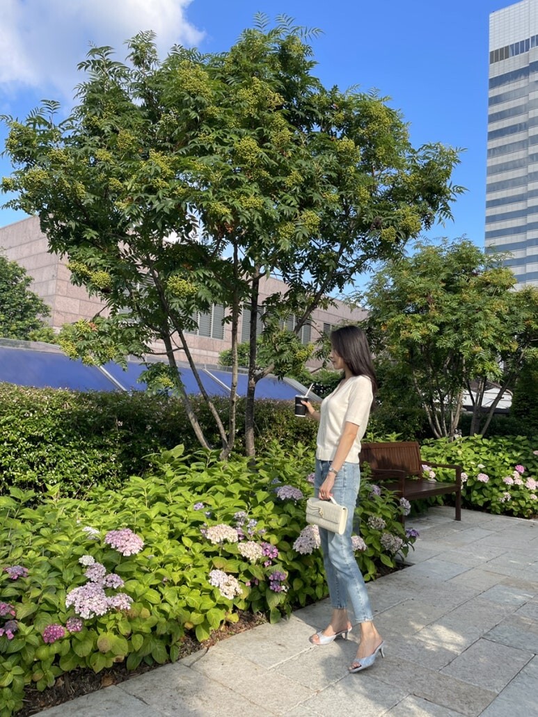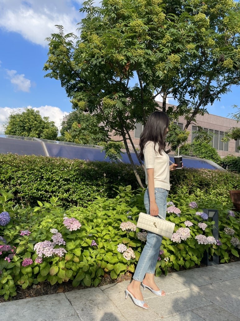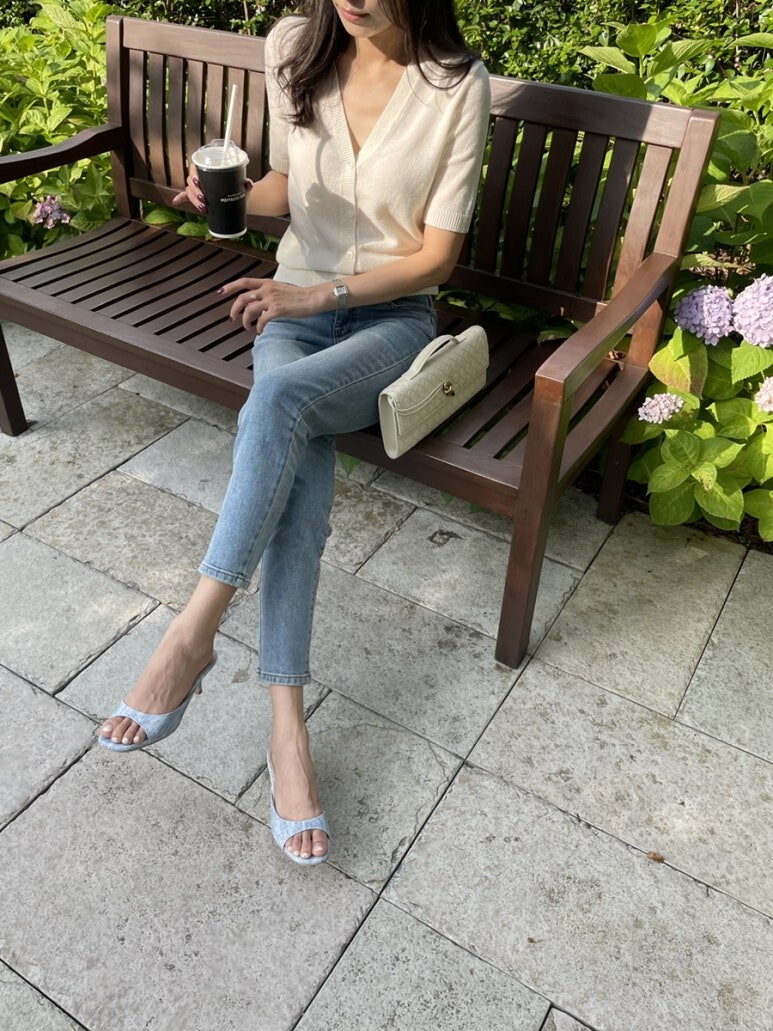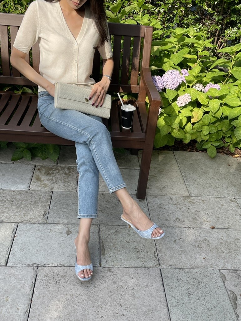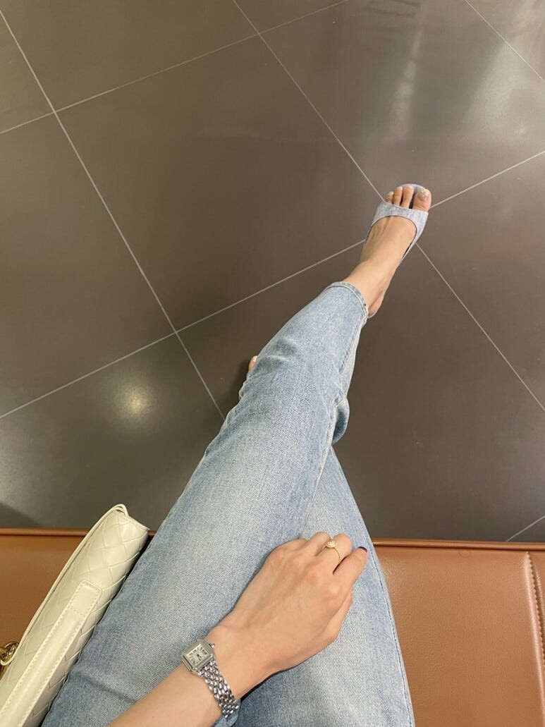 슈즈의 연청 컬러가 자연스럽게 녹아들면서도