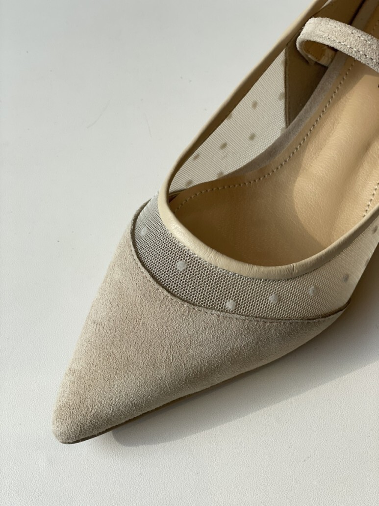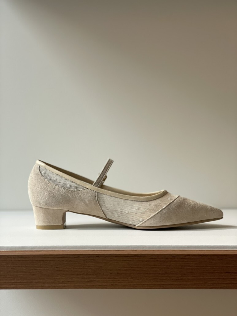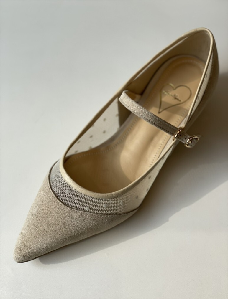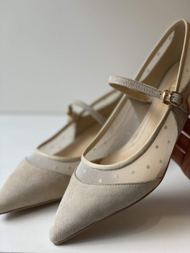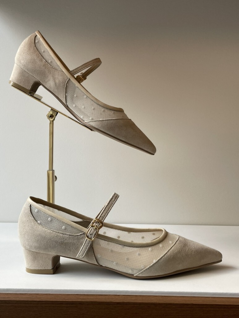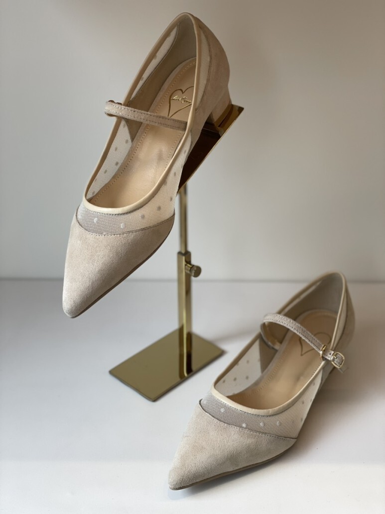 Ivory Suede Dot Mary Jane - (1,3,5,6cm)