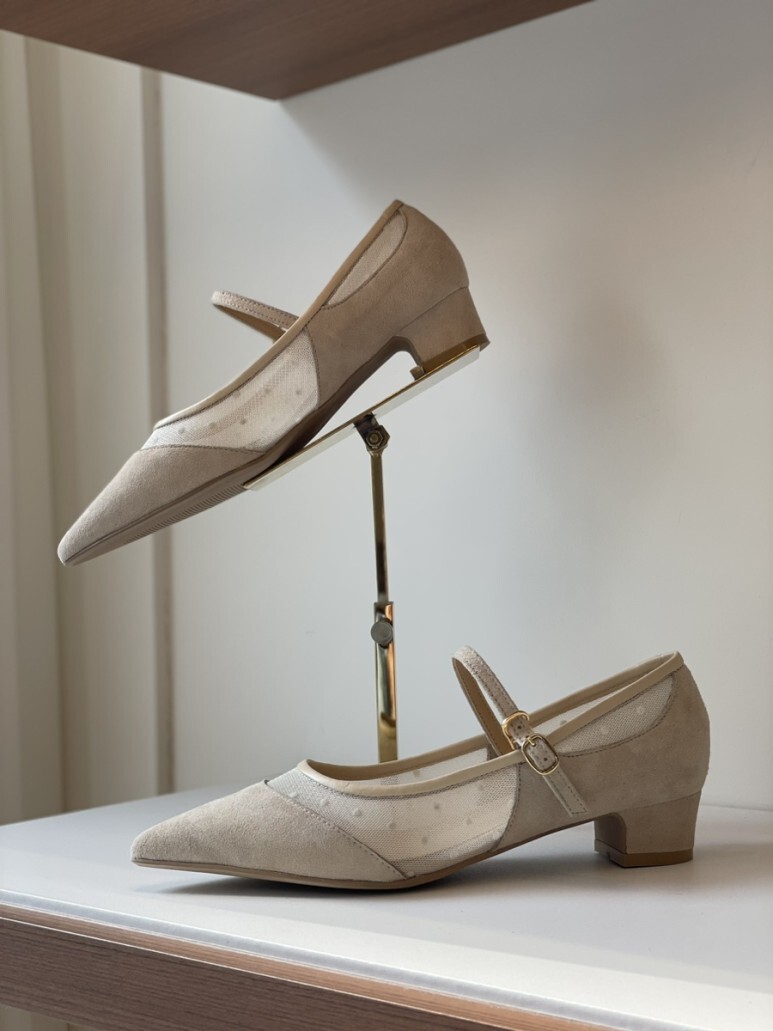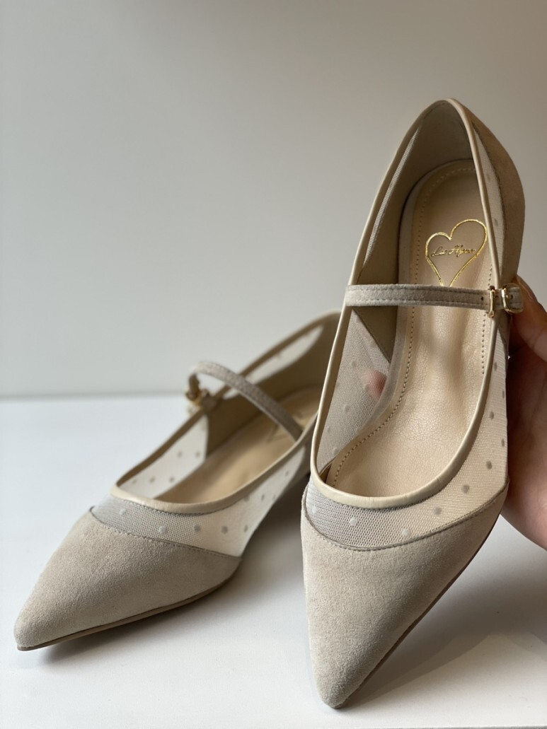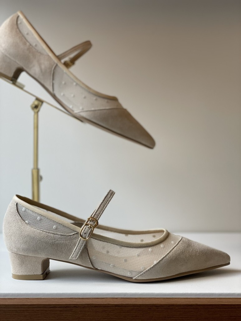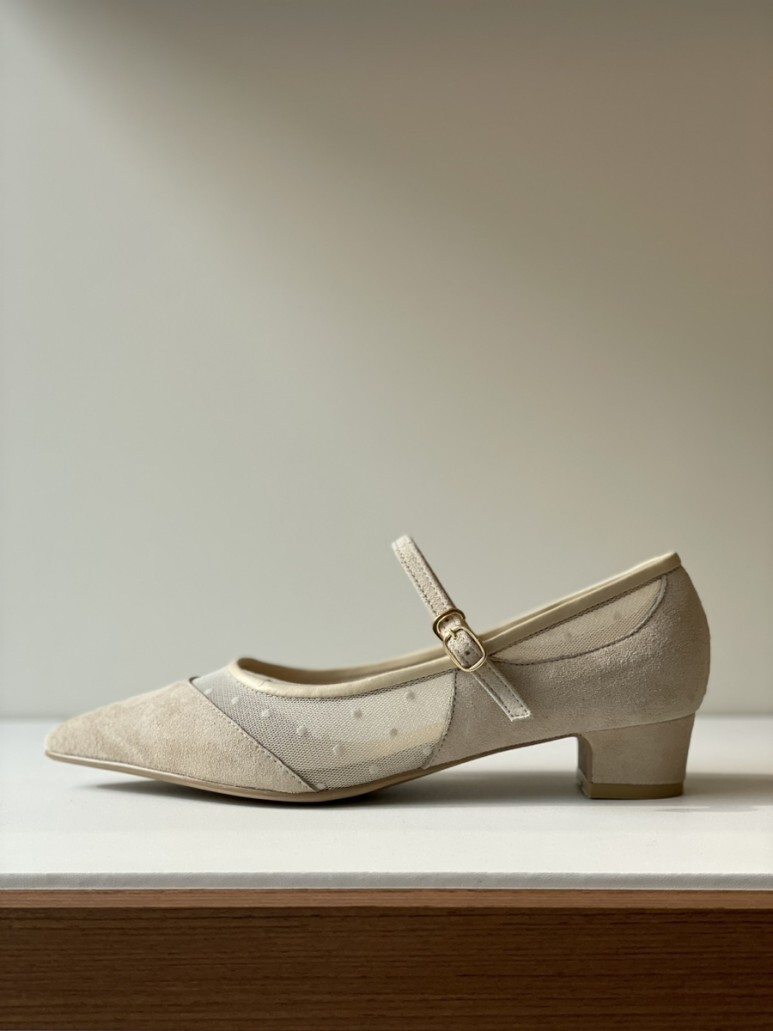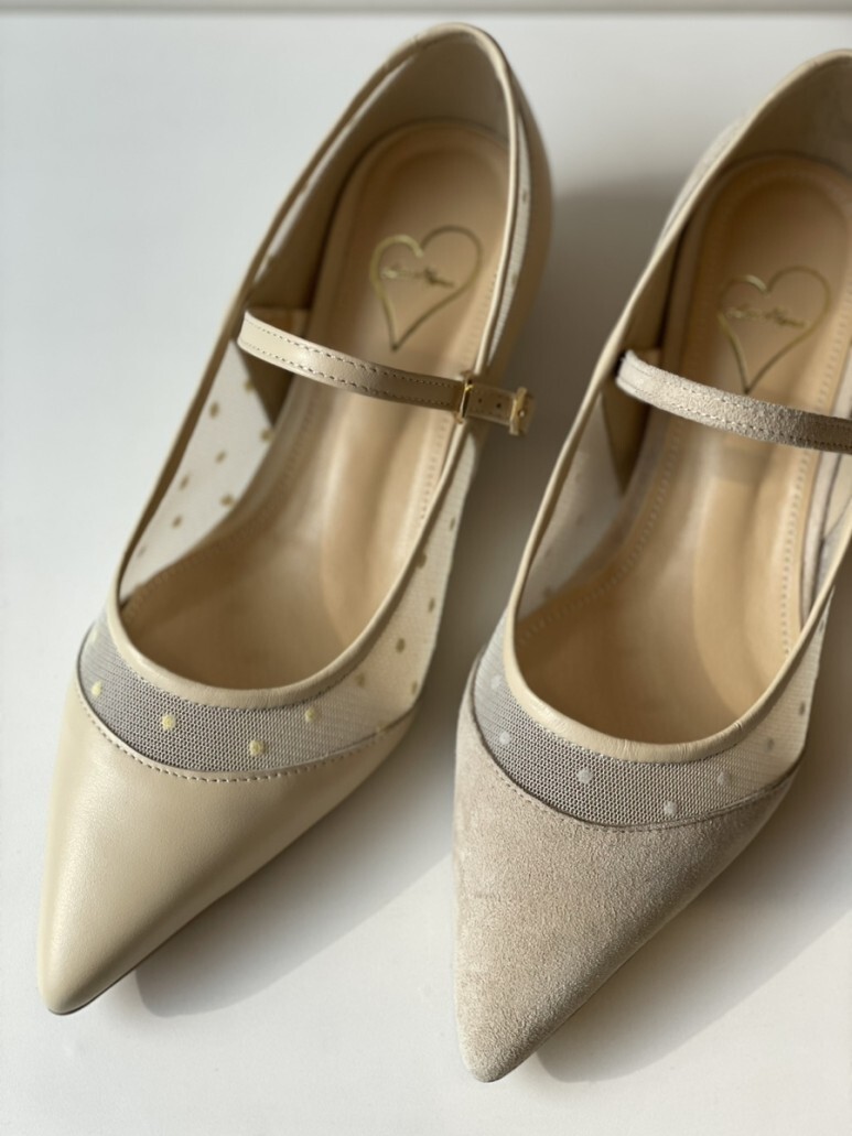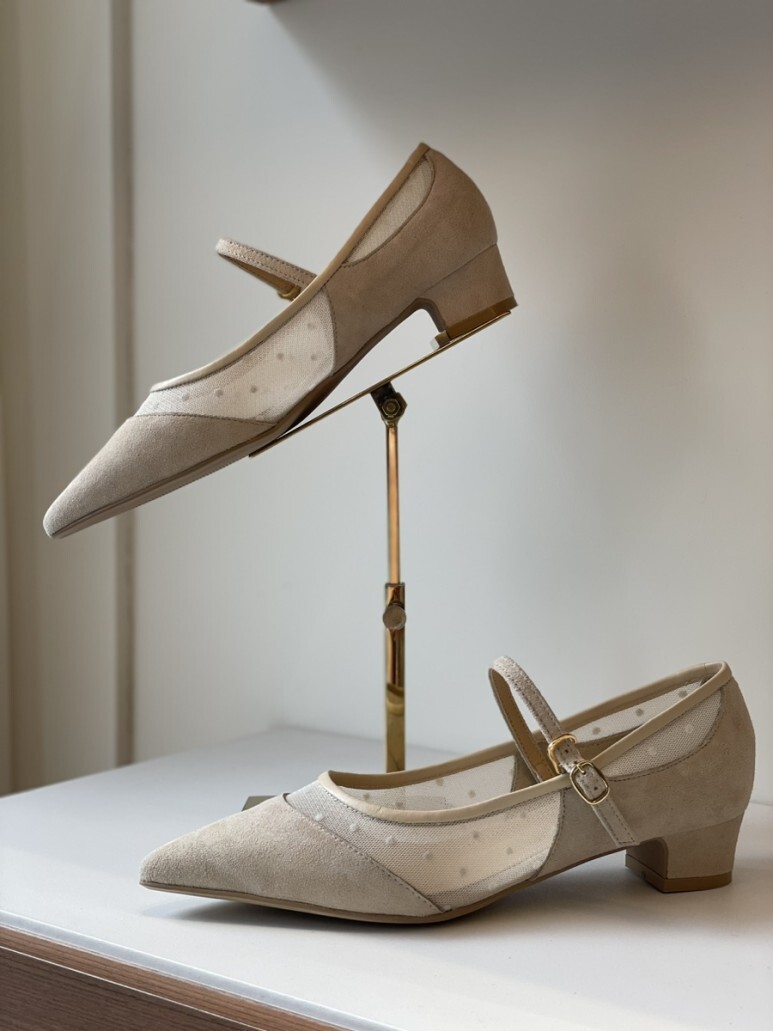Ivory Suede Dot Mary Jane - (1,3,5,6cm)