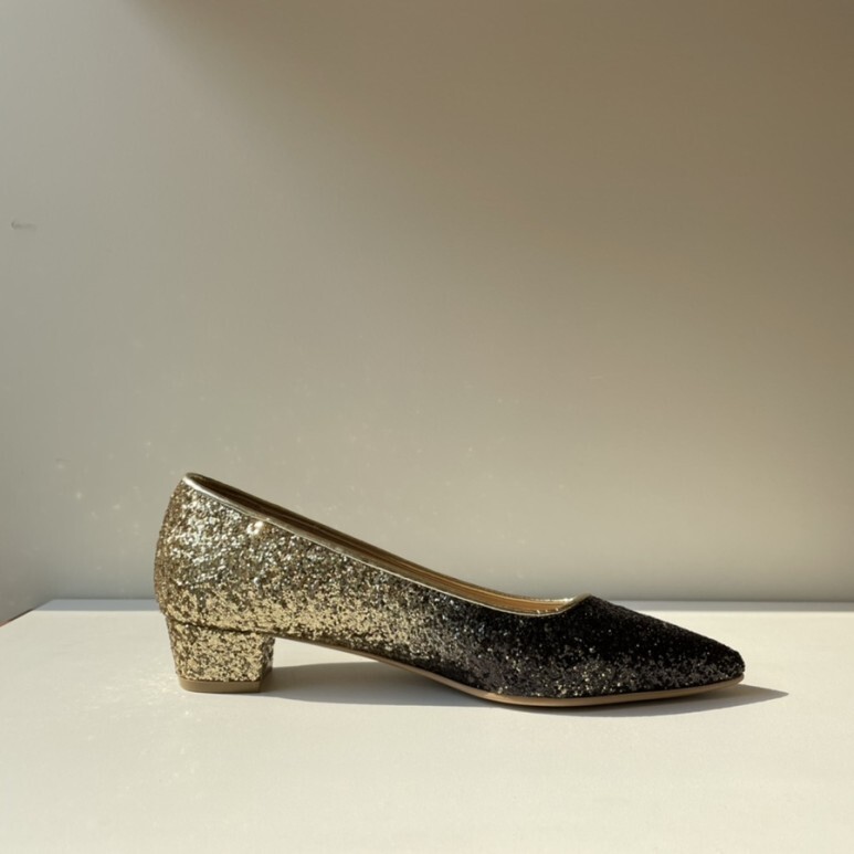 앞코는 블랙, 뒤쪽으로 갈수록 점점 골드컬러가 되는