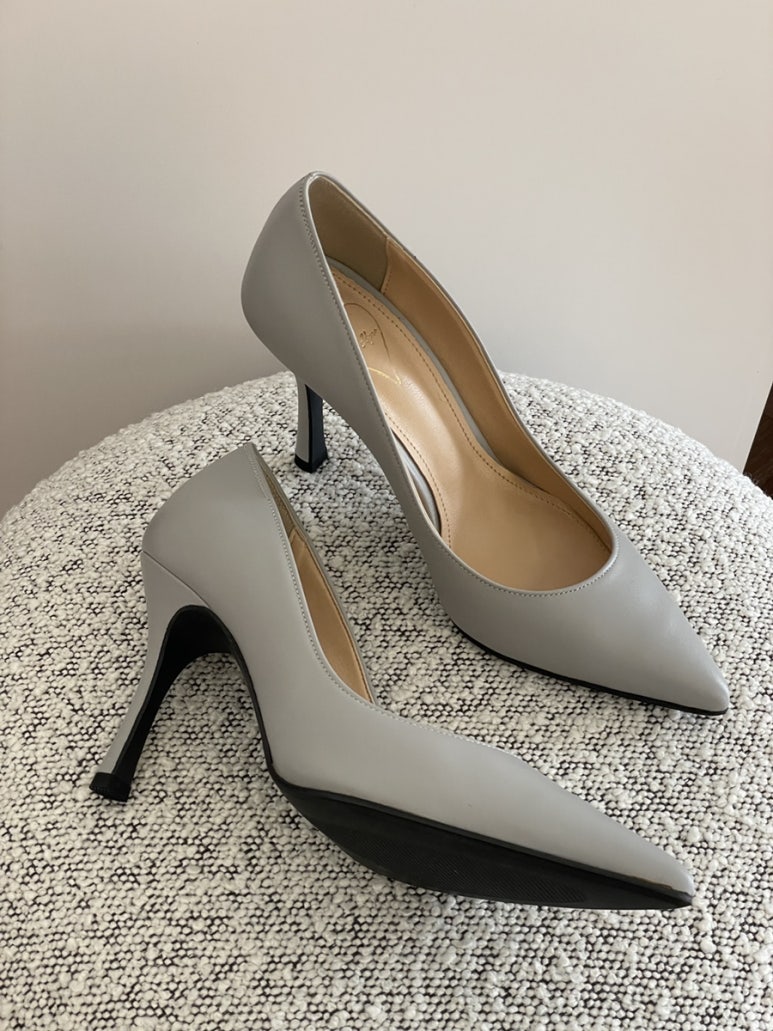 은은하게 흐르는 미스트 그레이 컬러의 하이힐.