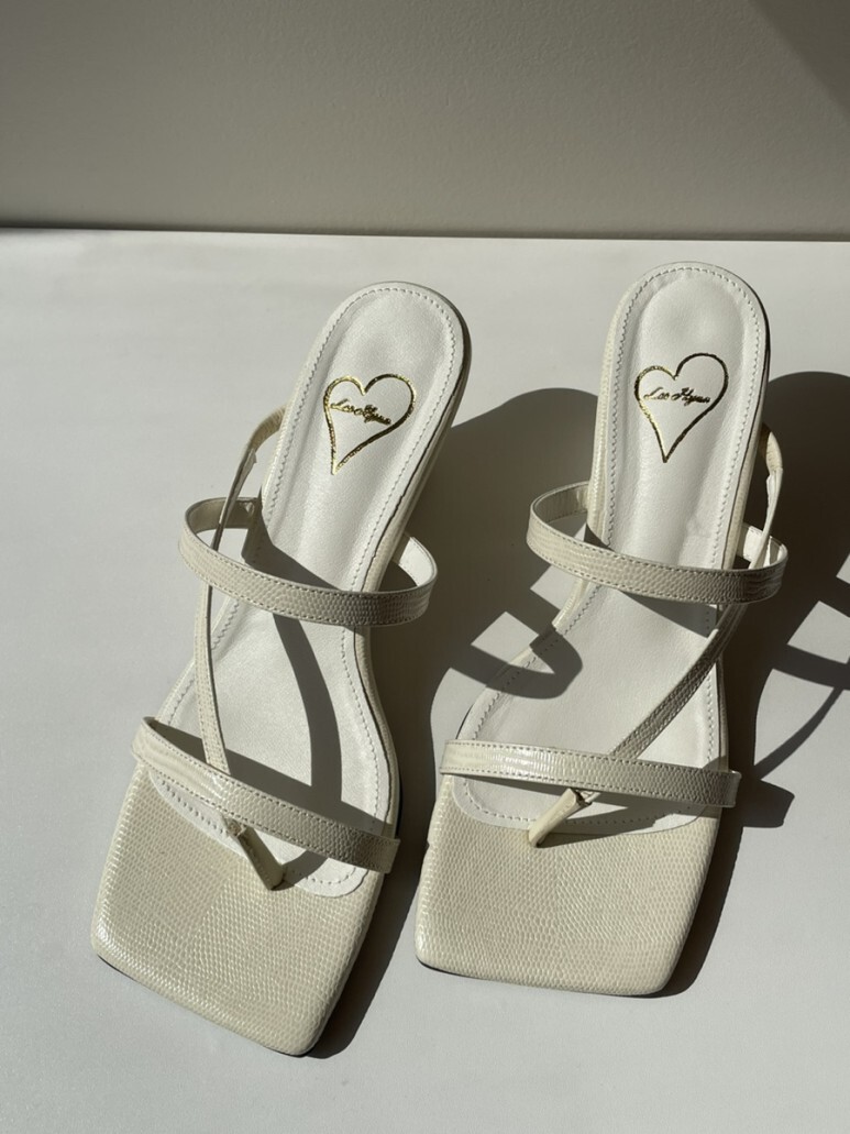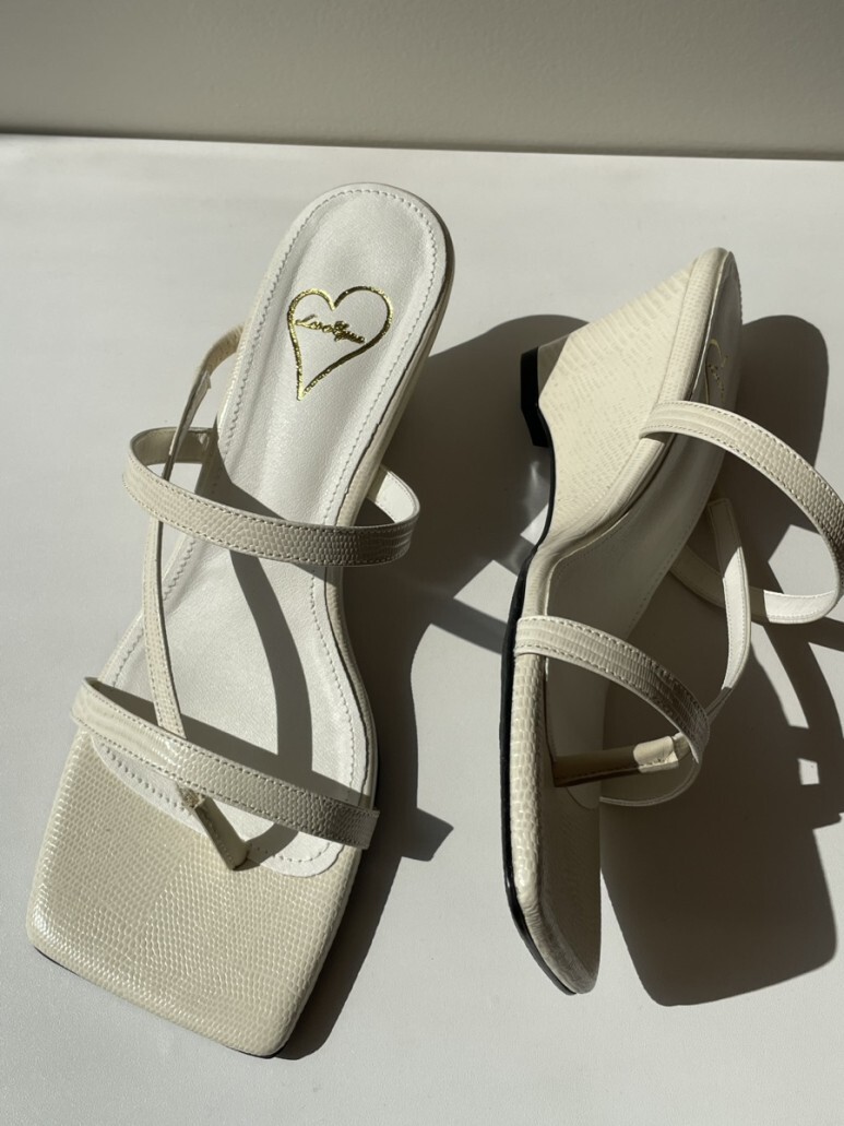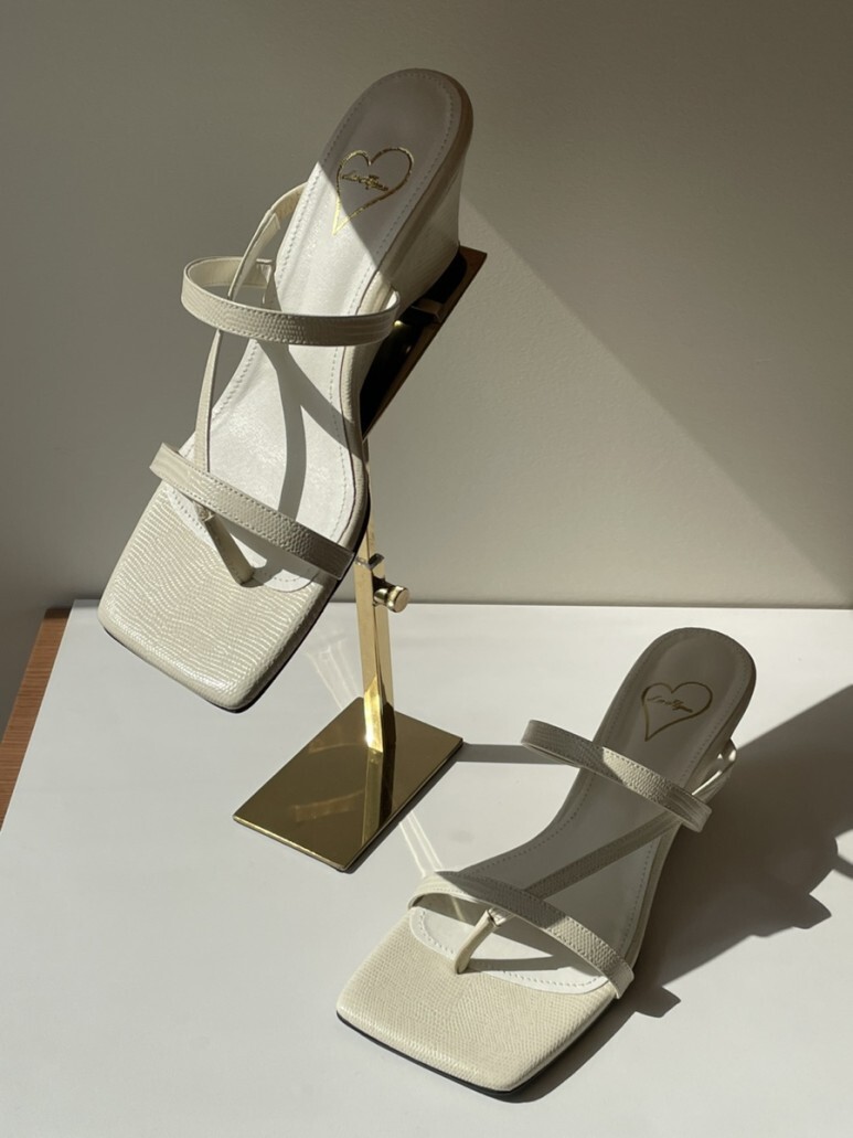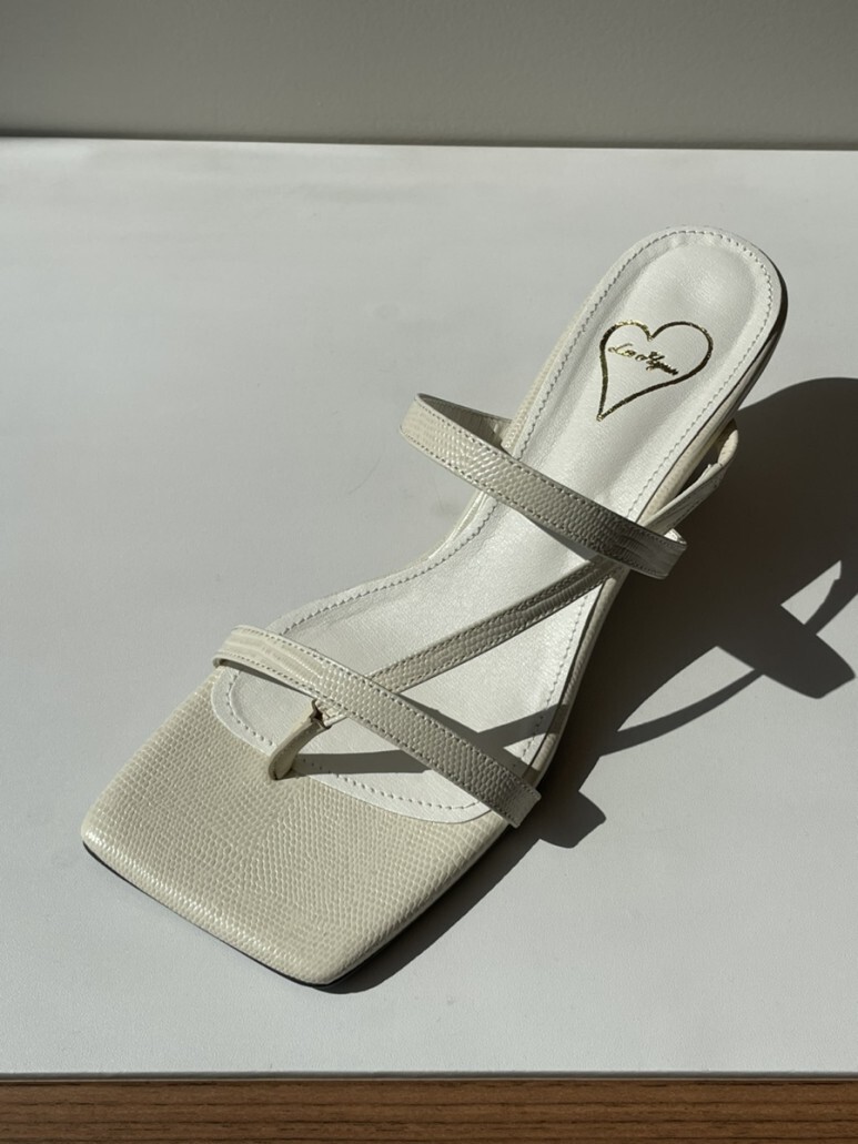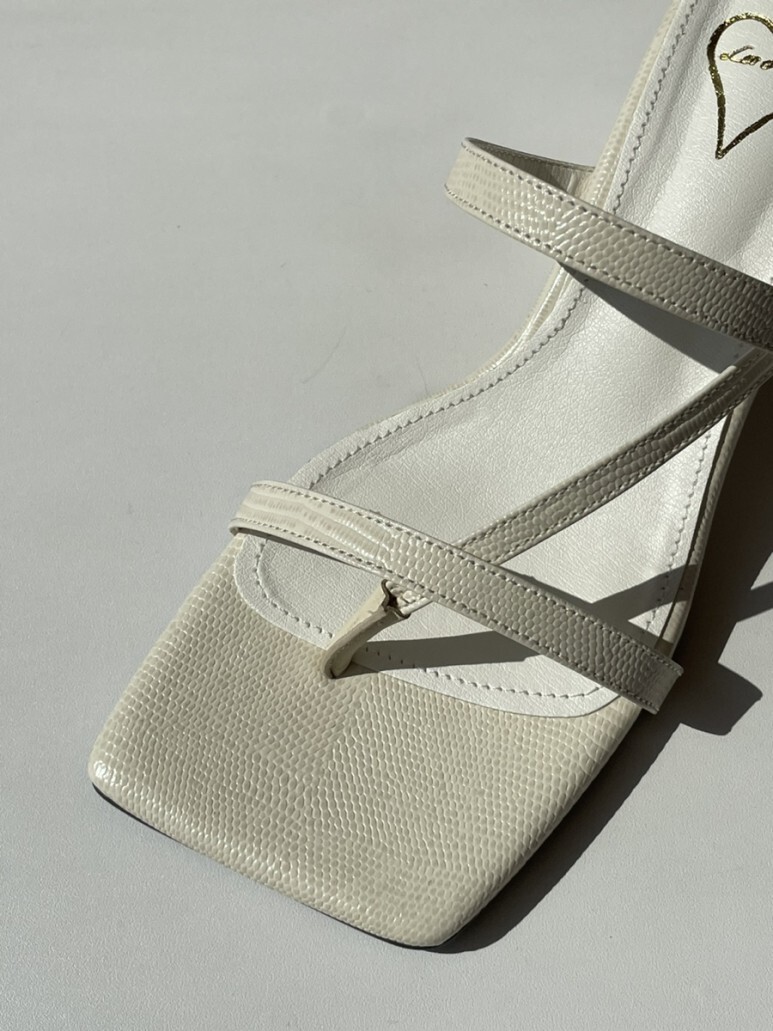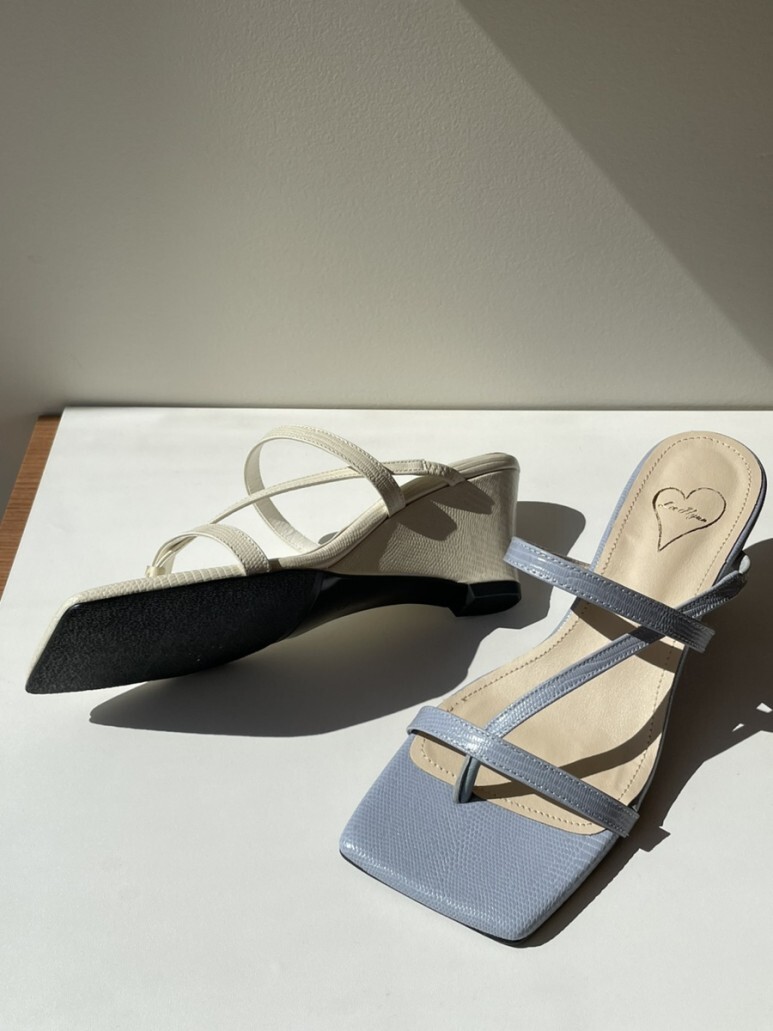 가느다란 두 줄 스트랩은 발등 위를 부드럽게 감싸면서