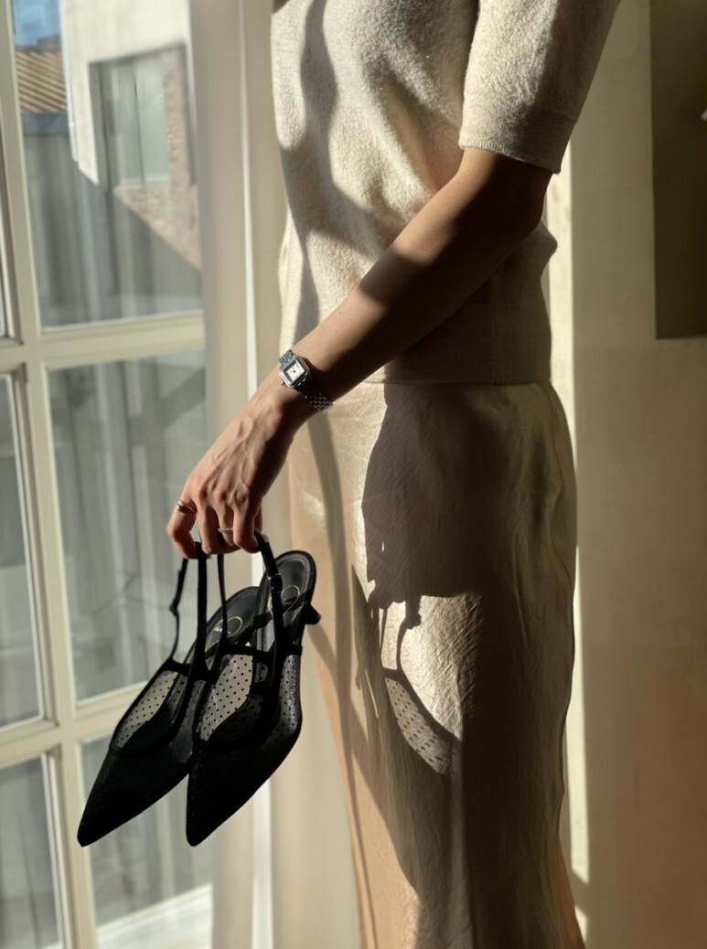 이 슈즈는 단순한 블랙 슬링백이 아니라