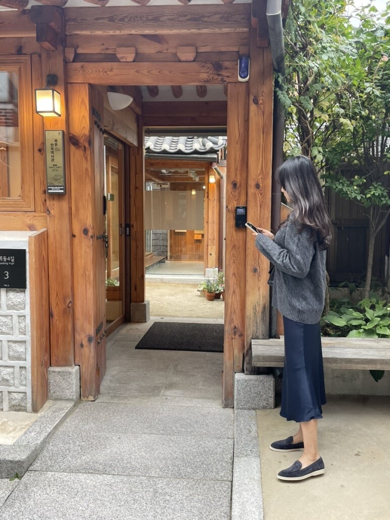 착화컷처럼 스카이블루 계열이나 화이트, 그레이 니트와