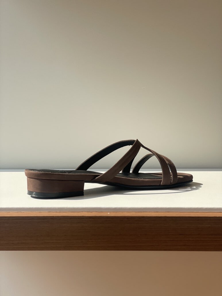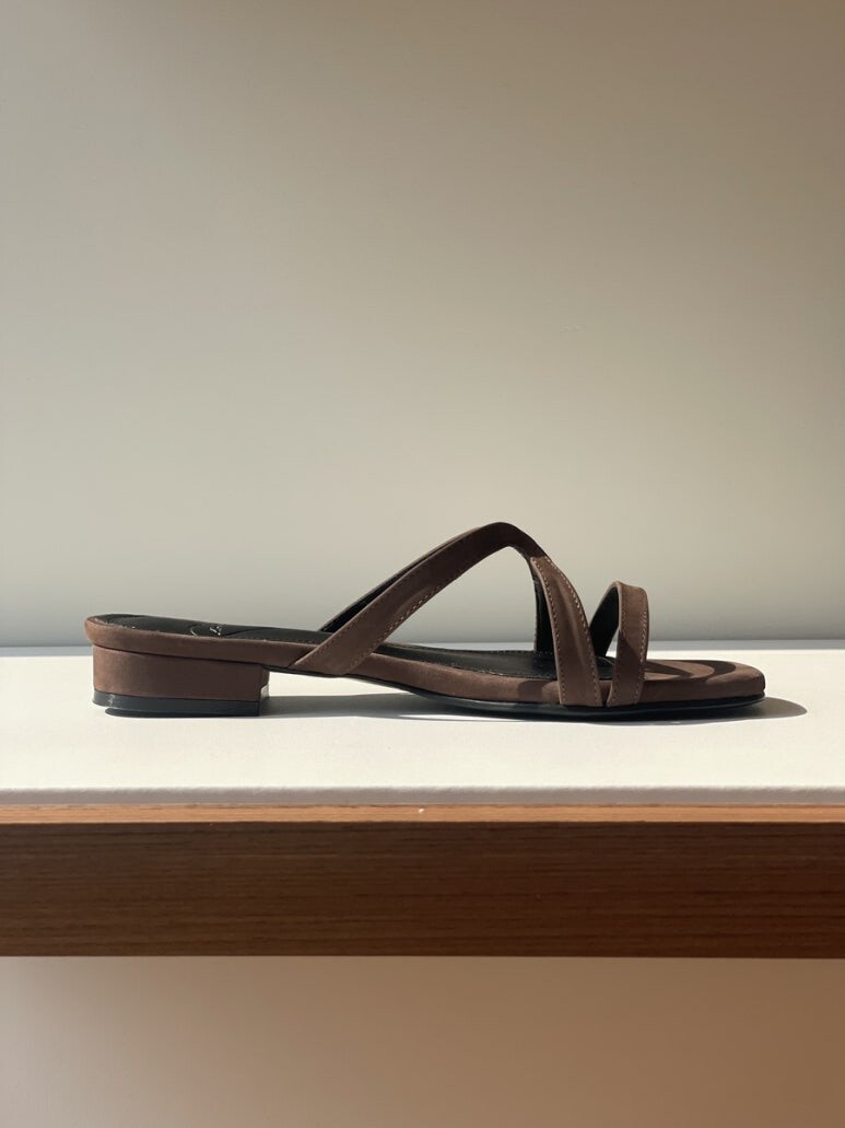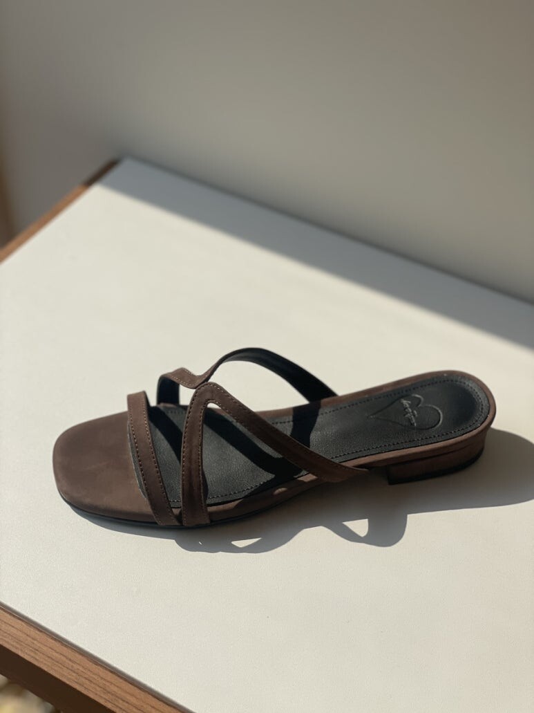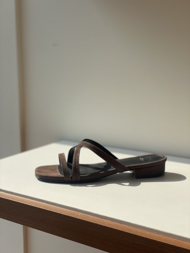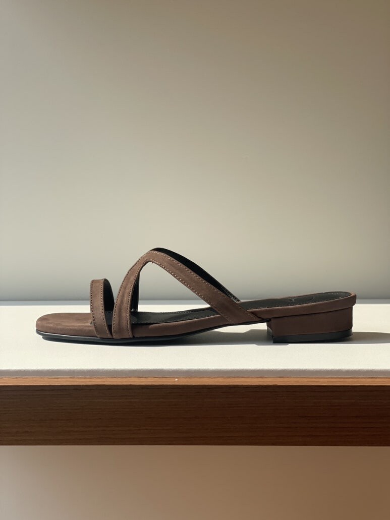이태리 누벅 가죽으로 제작된 미니멀 플랫 뮬로