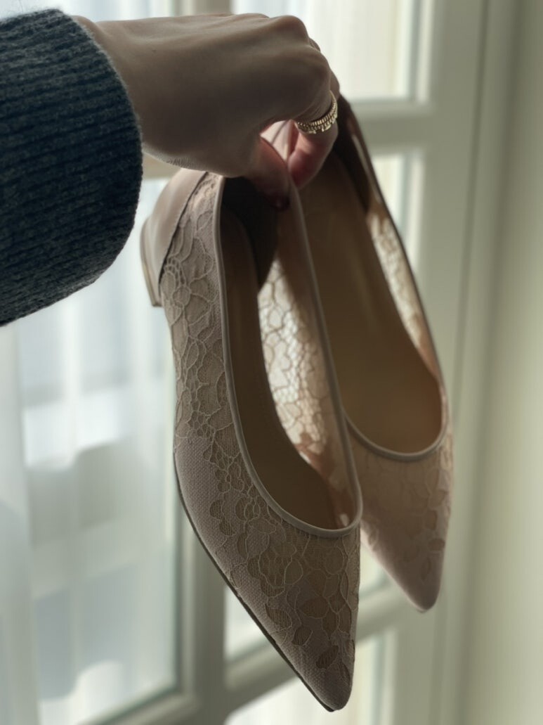섬세한 레이스가 발등 전체를 감싸면서