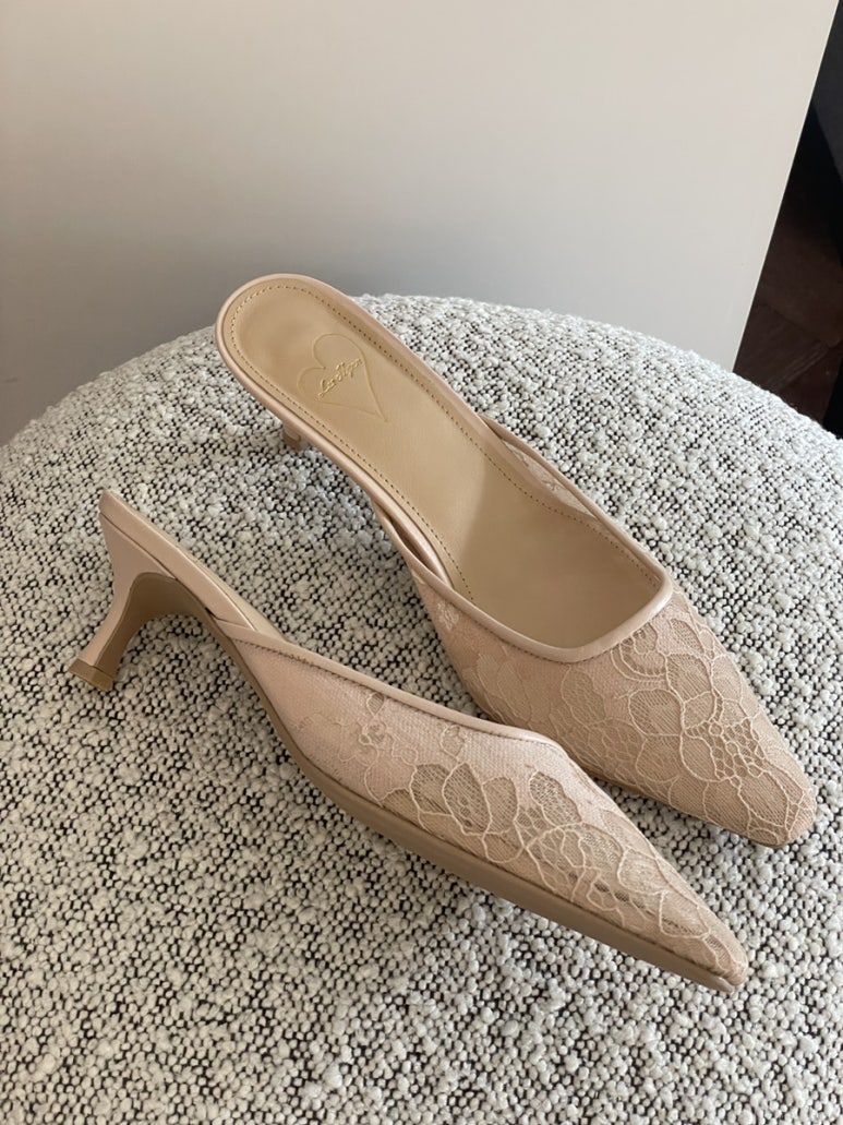 ๐ฉฐ Peach Pink Lace Mule — 5cm Edition