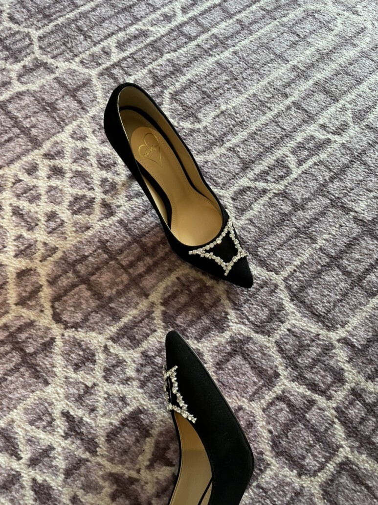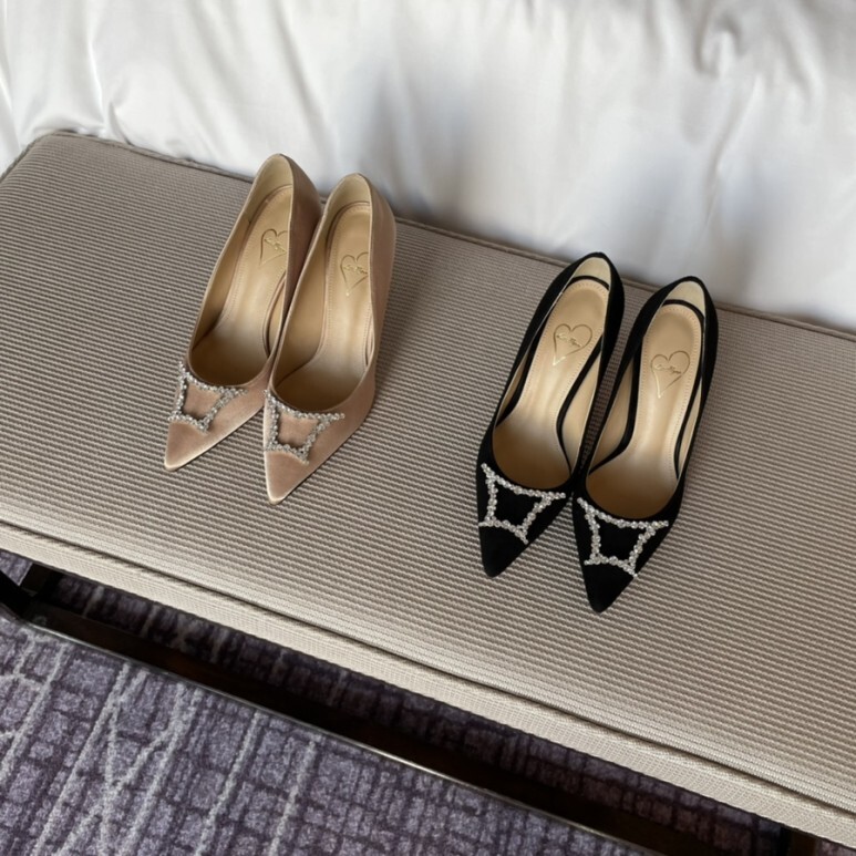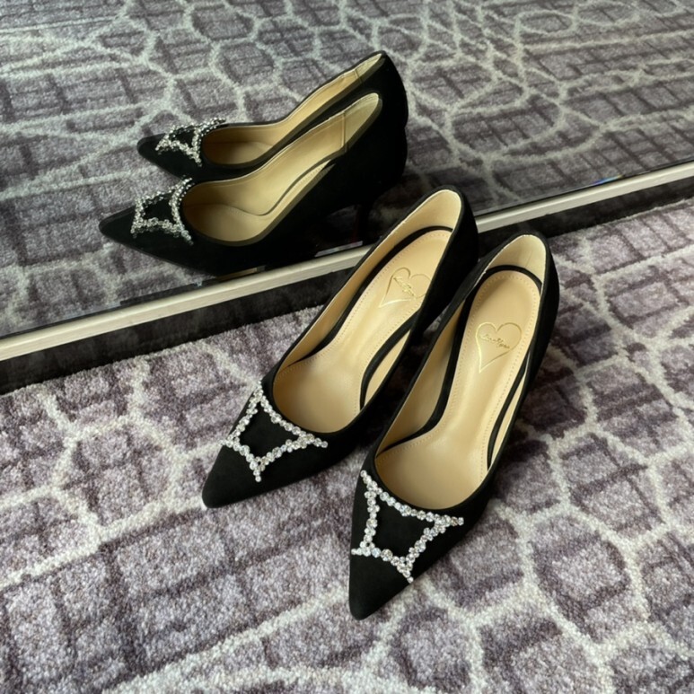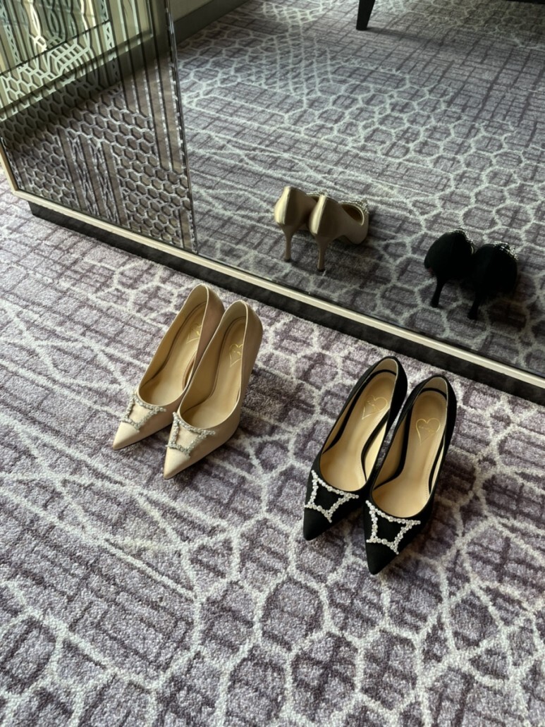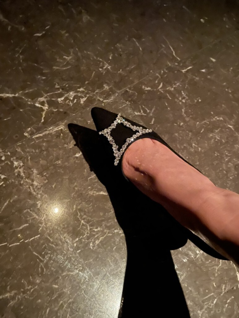 슈즈 끝의 주얼리가 더욱 선명하게 도드라져