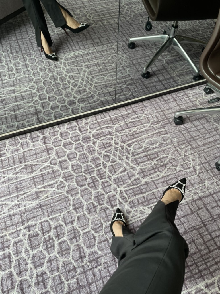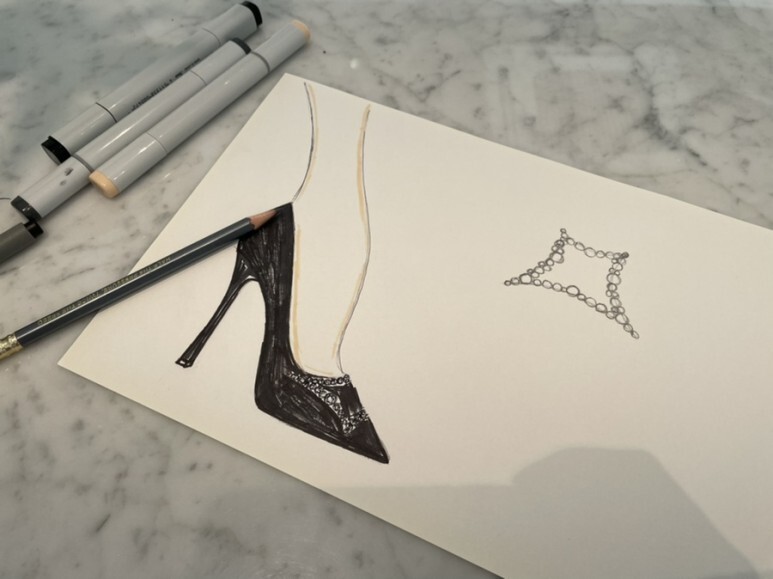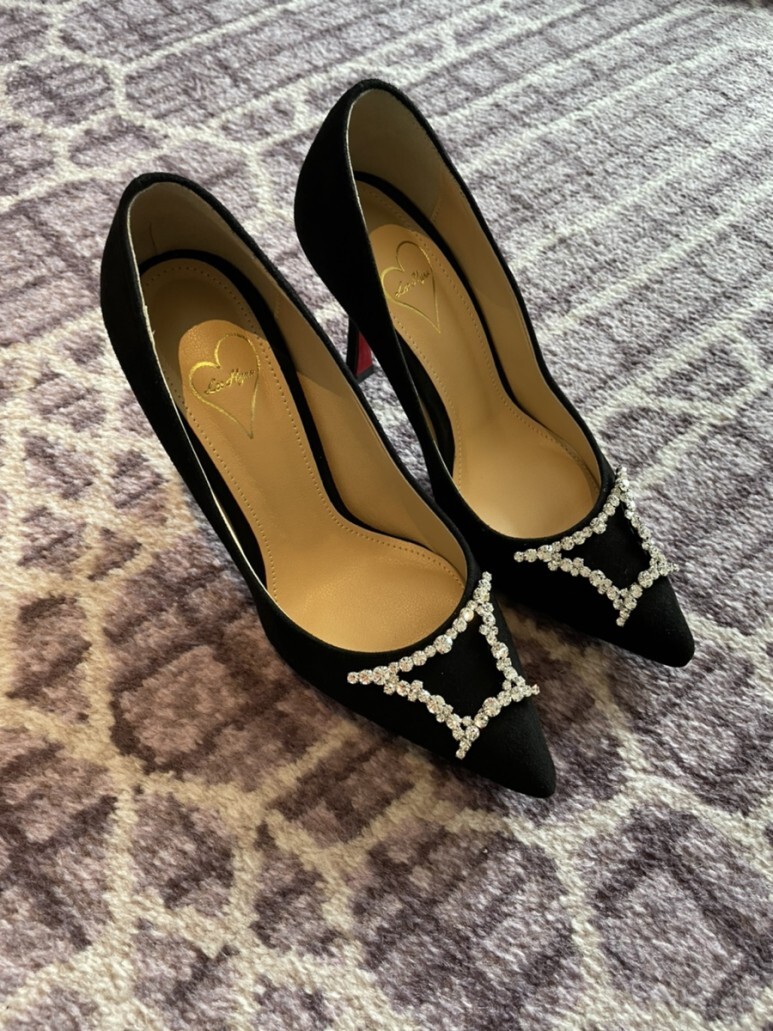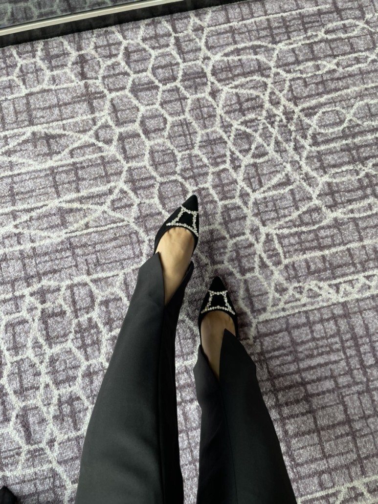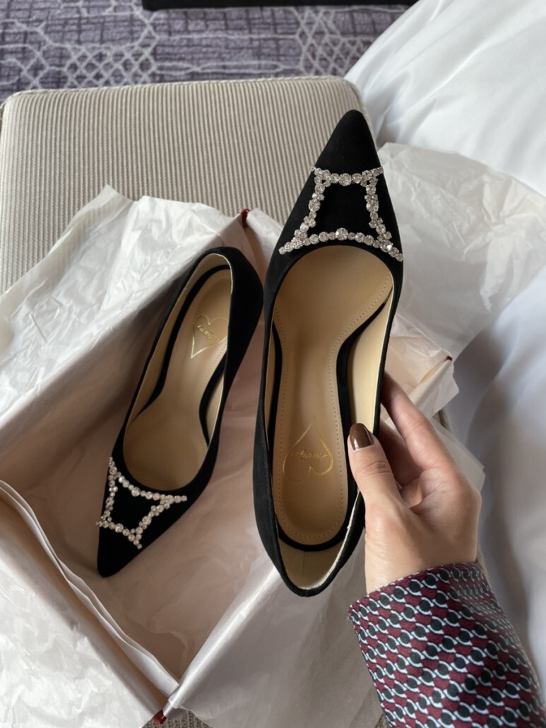 슈즈 끝의 주얼리가 더욱 선명하게 도드라져