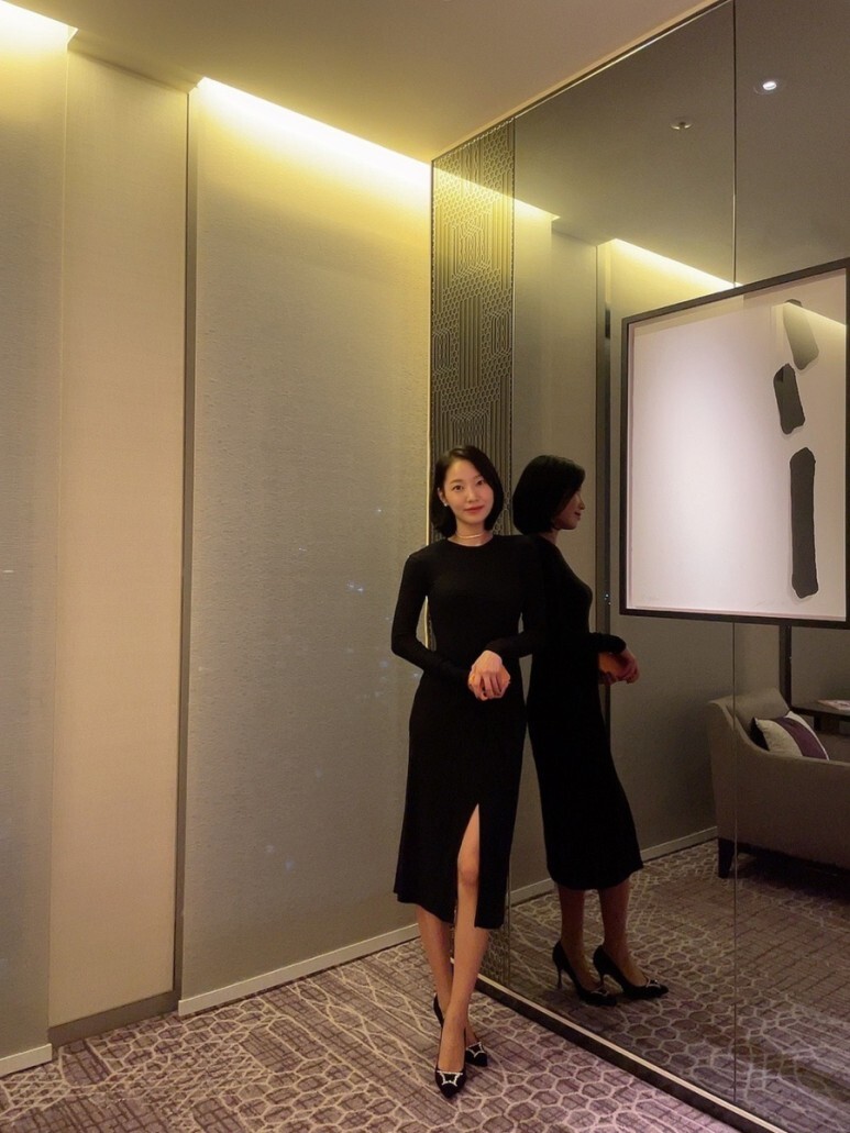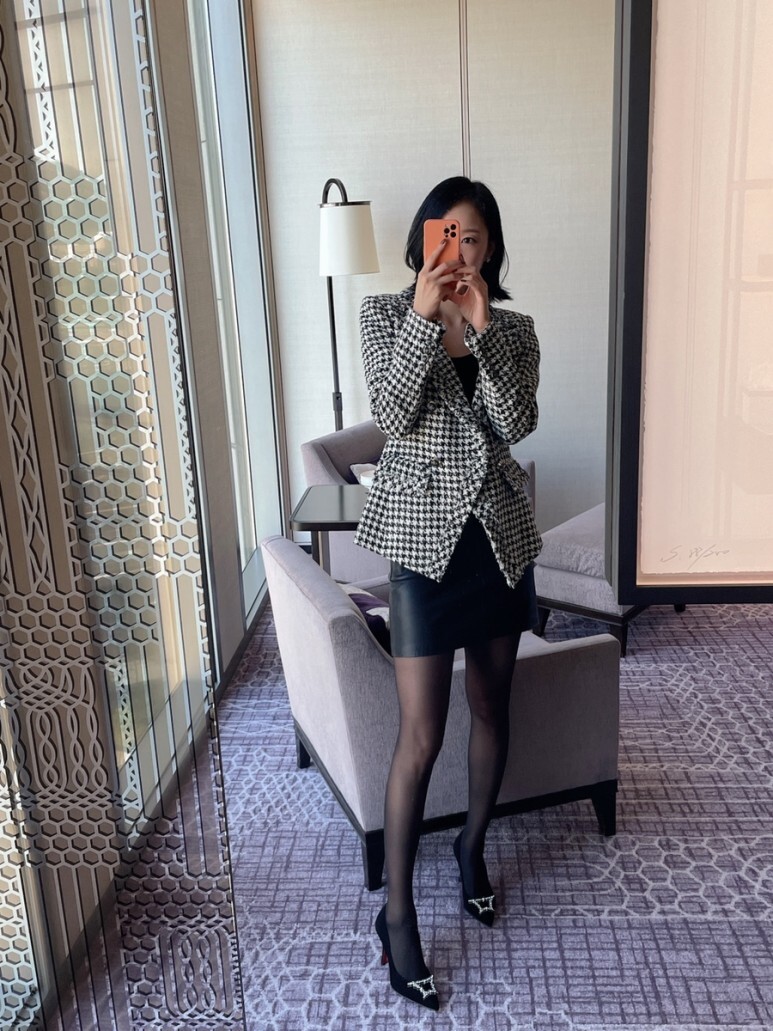 겨울엔 20데니아 이하의 얇은 블랙 스타킹과 함께 스타일링하면