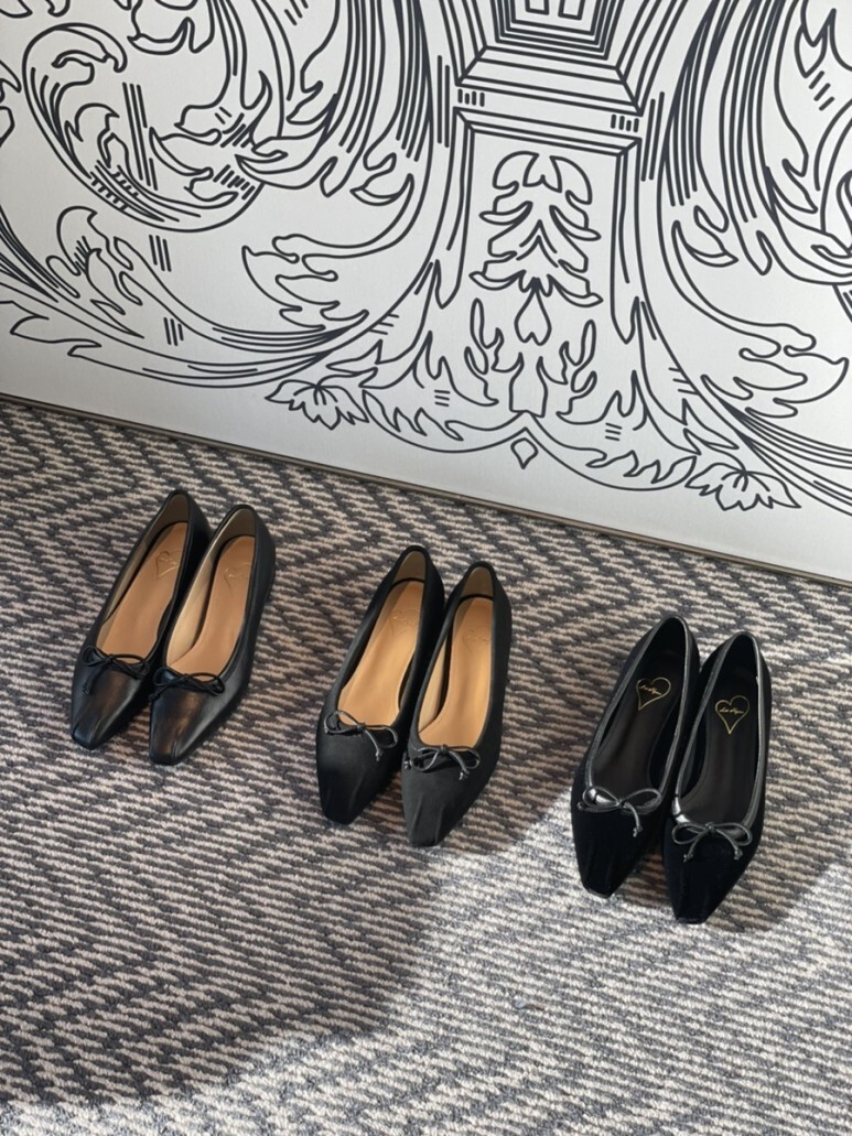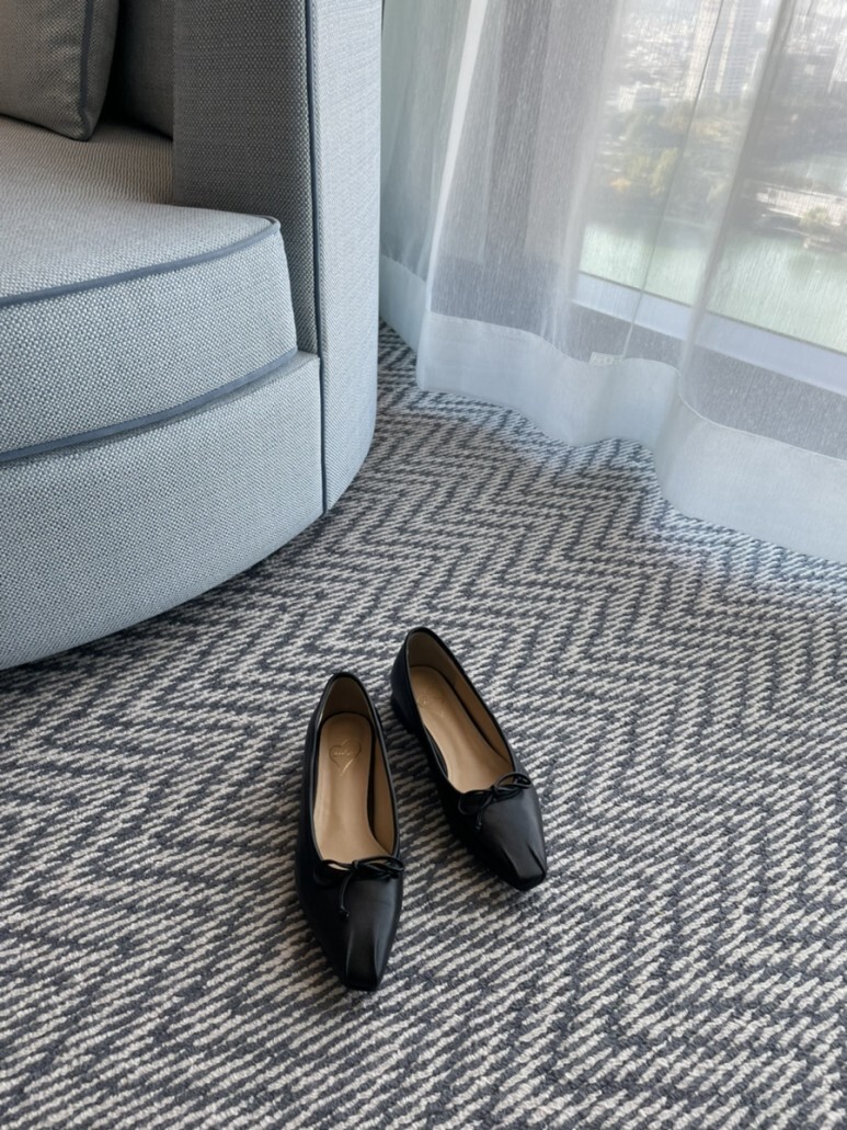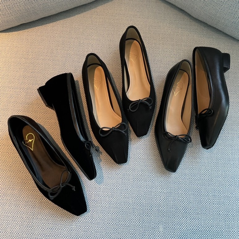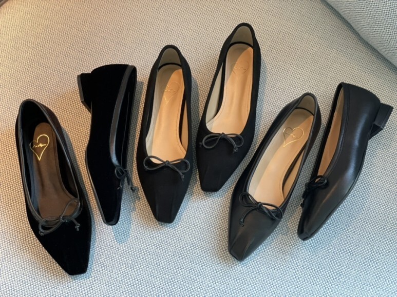 스퀘어라인이나 라운드토의 리본 플랫슈즈들은