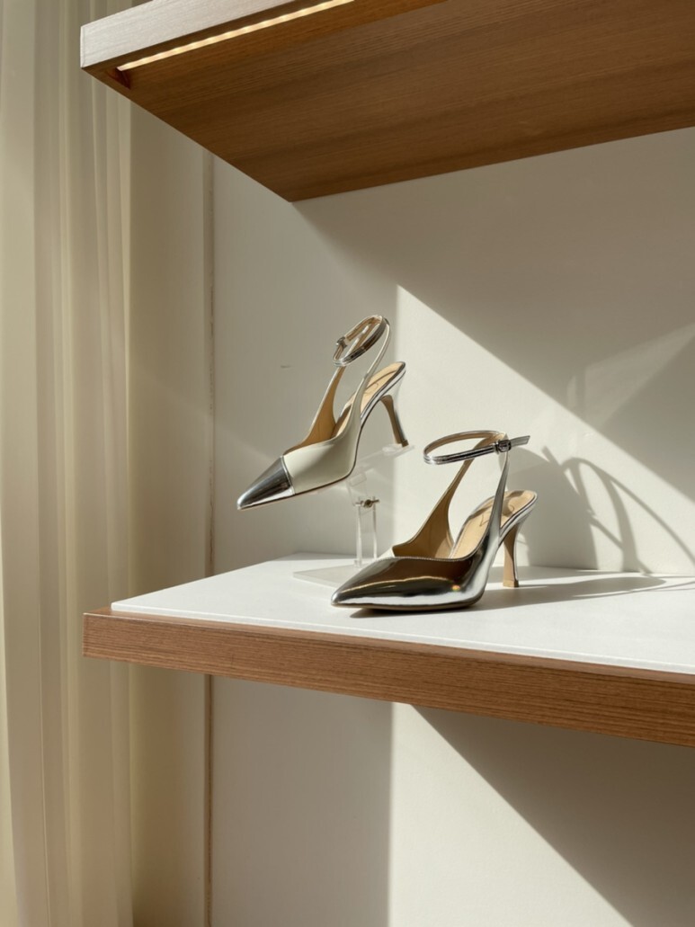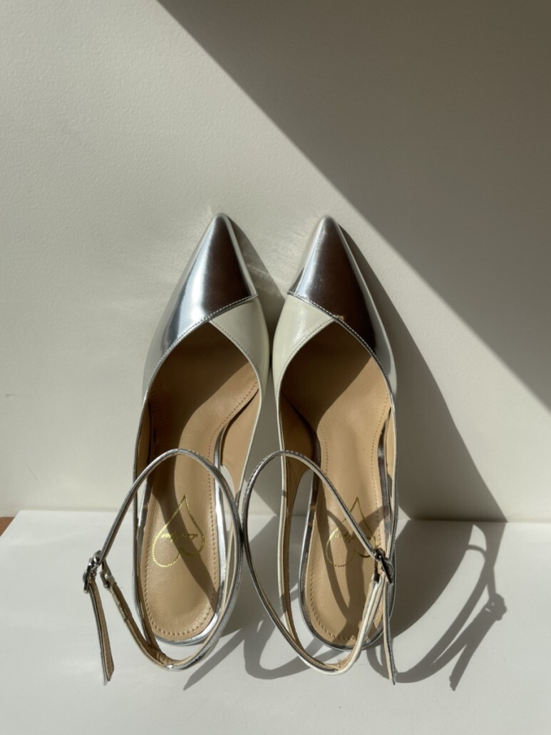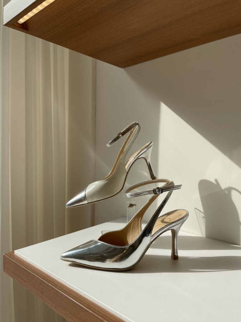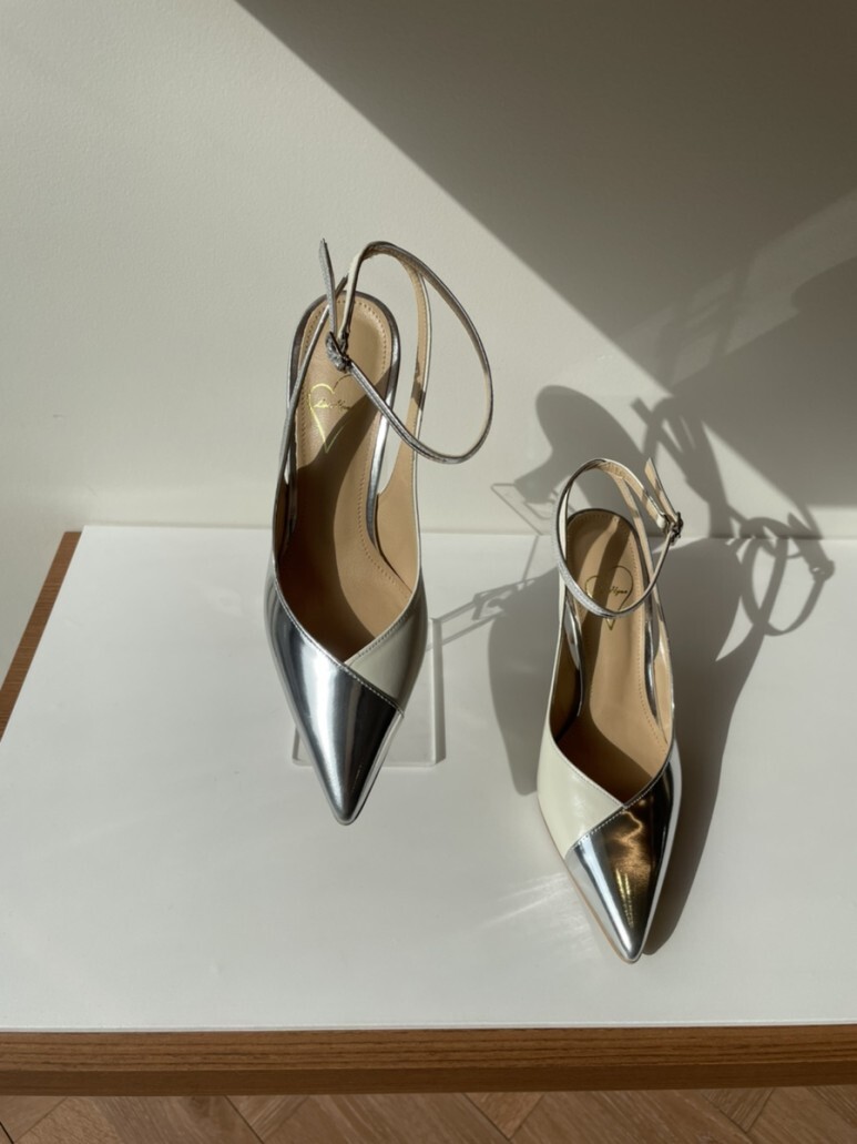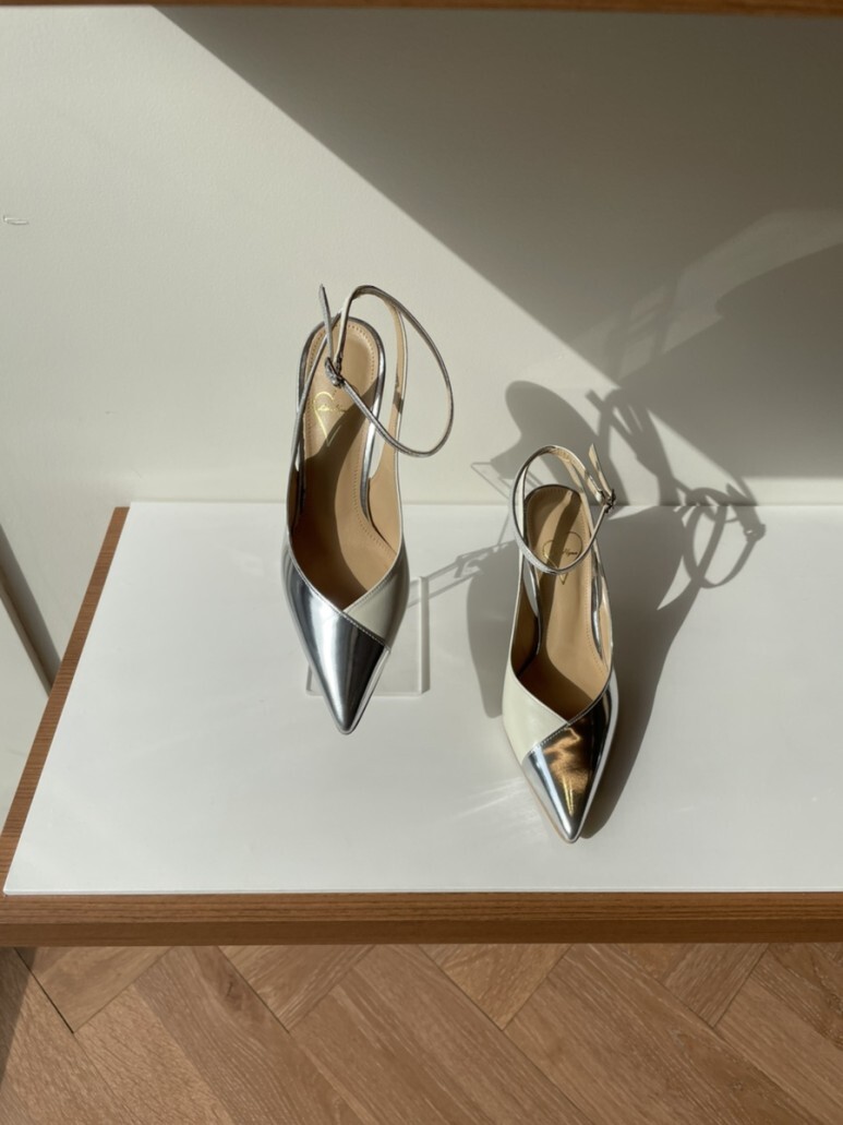 구두를 신고 해가 비칠 때 쨍한 실버컬러가