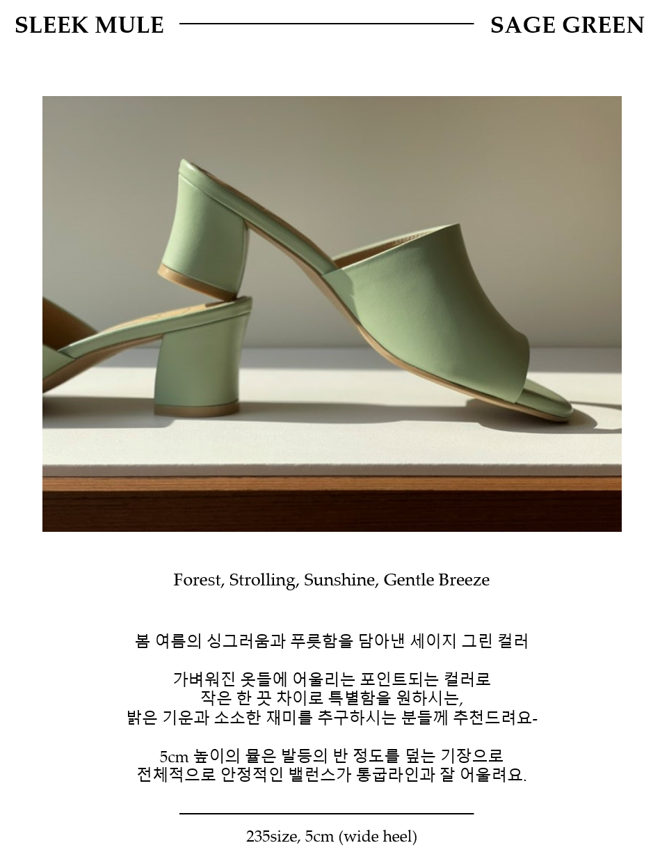 * 5cm 세이지그린은 통굽 라인과 안정적인 밸런스로