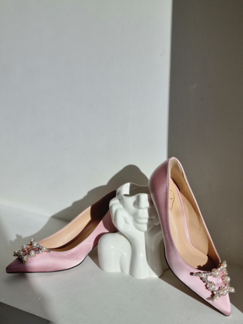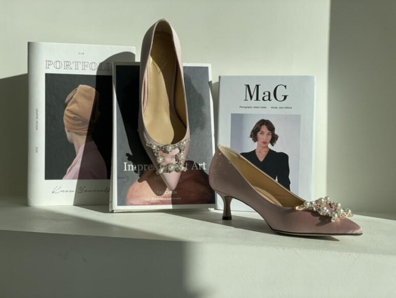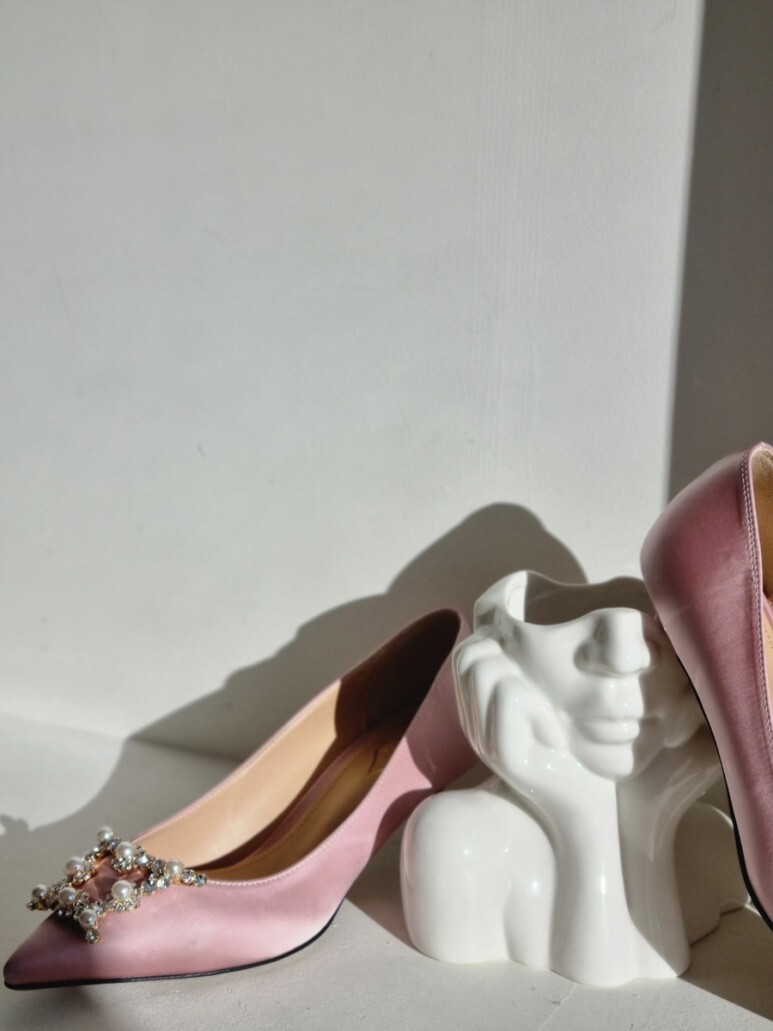 핑크 사틴은 웨딩촬영을 위한 슈즈로도 손색없지만