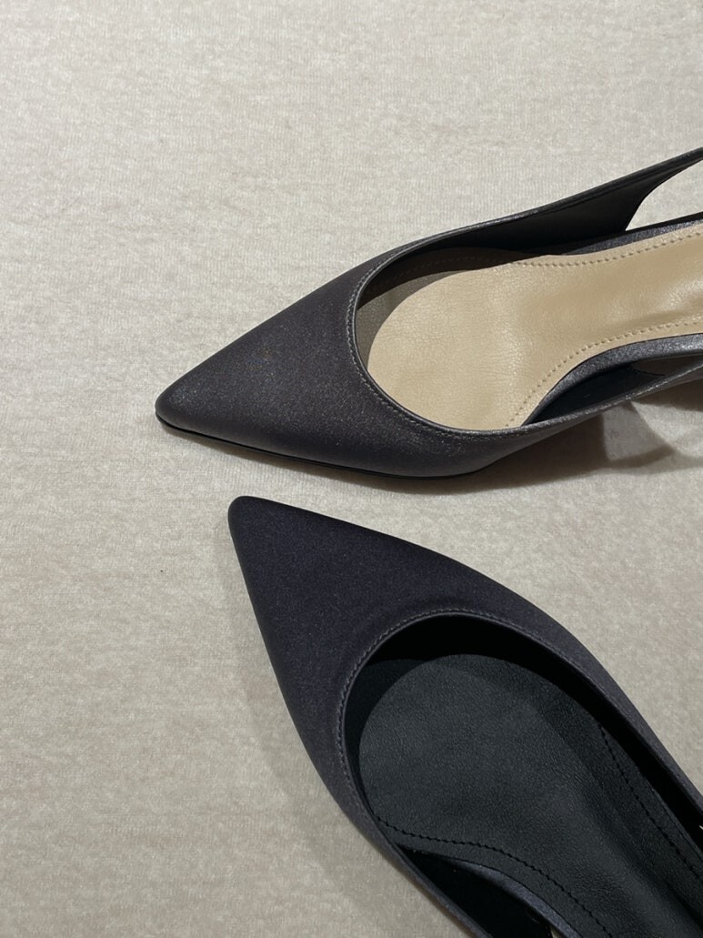 1. 사틴 소재 특성상 앞코에 들어가는 심의 경계의 자국이